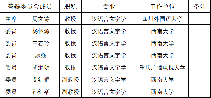 答辩委员会组成: