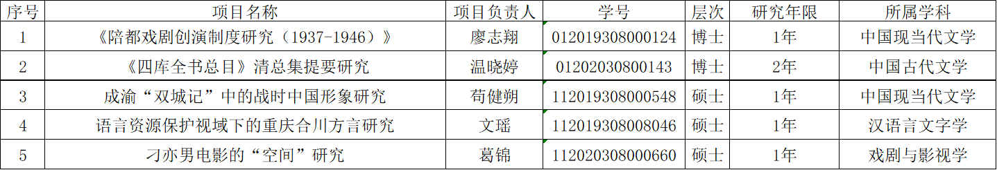 经专家组对申报项目进行评审,现将我院推荐申报2021年重庆市研究生科研创新项目公示如下: