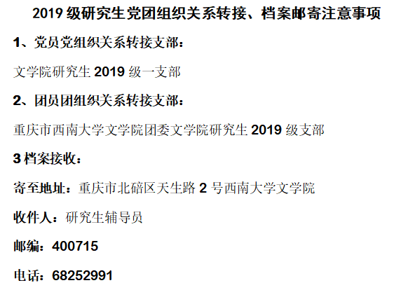 yl7703永利集团2019级研究生党团组织关系转接、档案邮寄注意事项