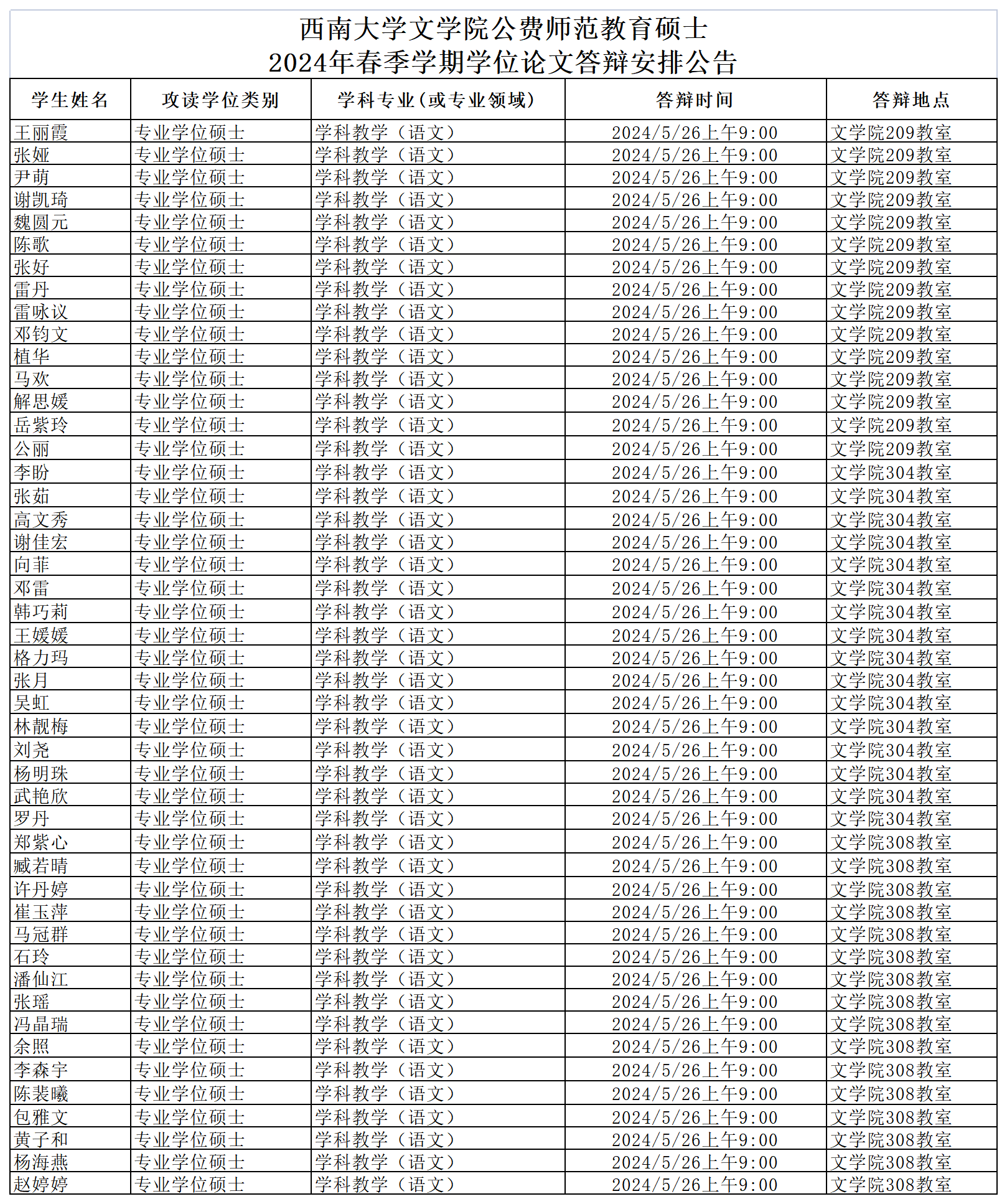 yl7703永利集团公费师范教育硕士2024年春季学期学位论文答辩安排公告