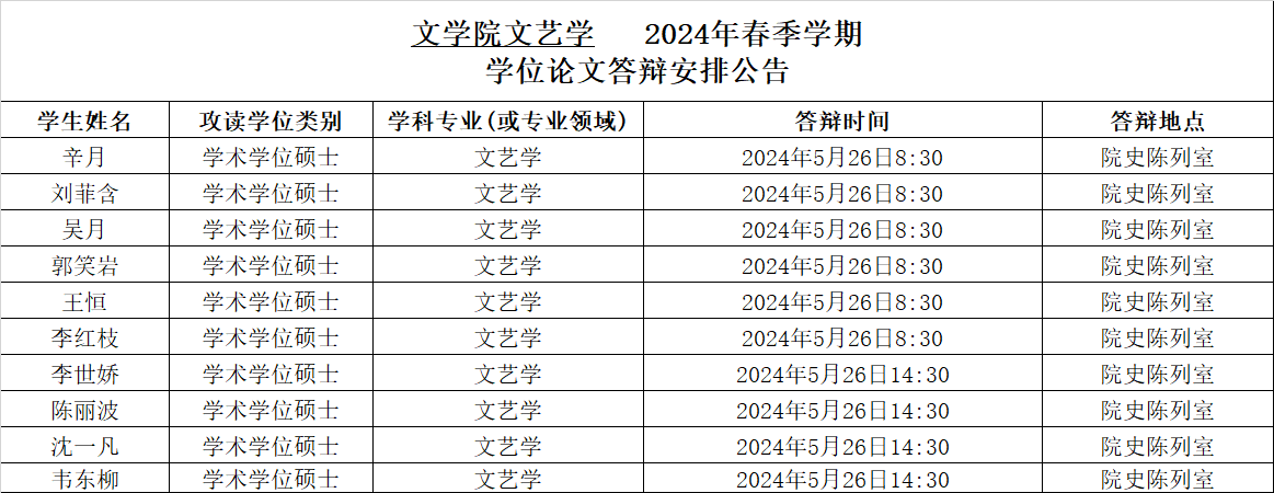 yl7703永利集团2024年春季学期文艺学专业硕士学位论文答辩安排公告