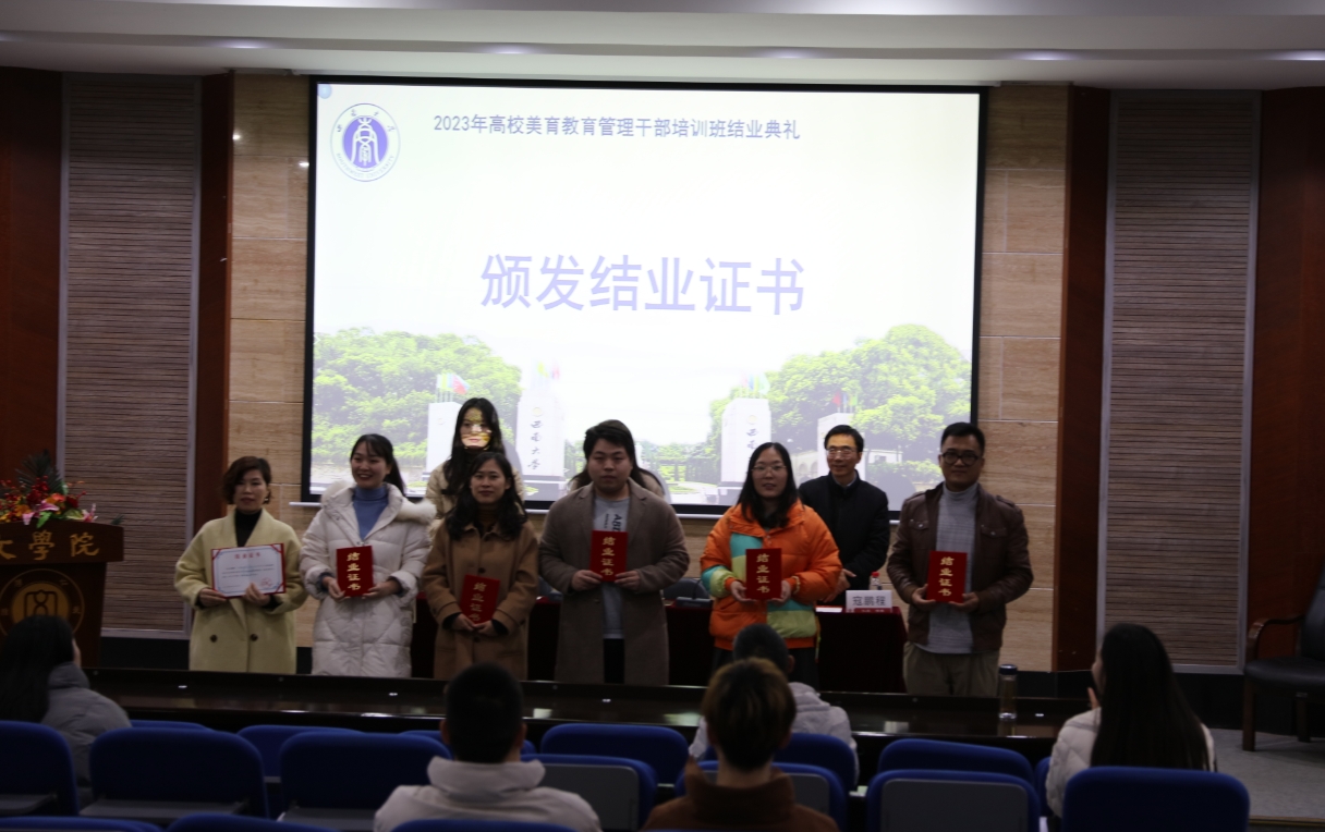 12月15日,yl7703永利集团举行重庆市2023年高校美育管理干部培训班结业典礼。yl7703永利集团党委副书记 纪委书记陈玥、副院长寇鹏程、培训班班主任杜云婷出席典礼。结业典礼由陈玥副书记主持。高校美育管理干部培训班的全体学员参加典礼。