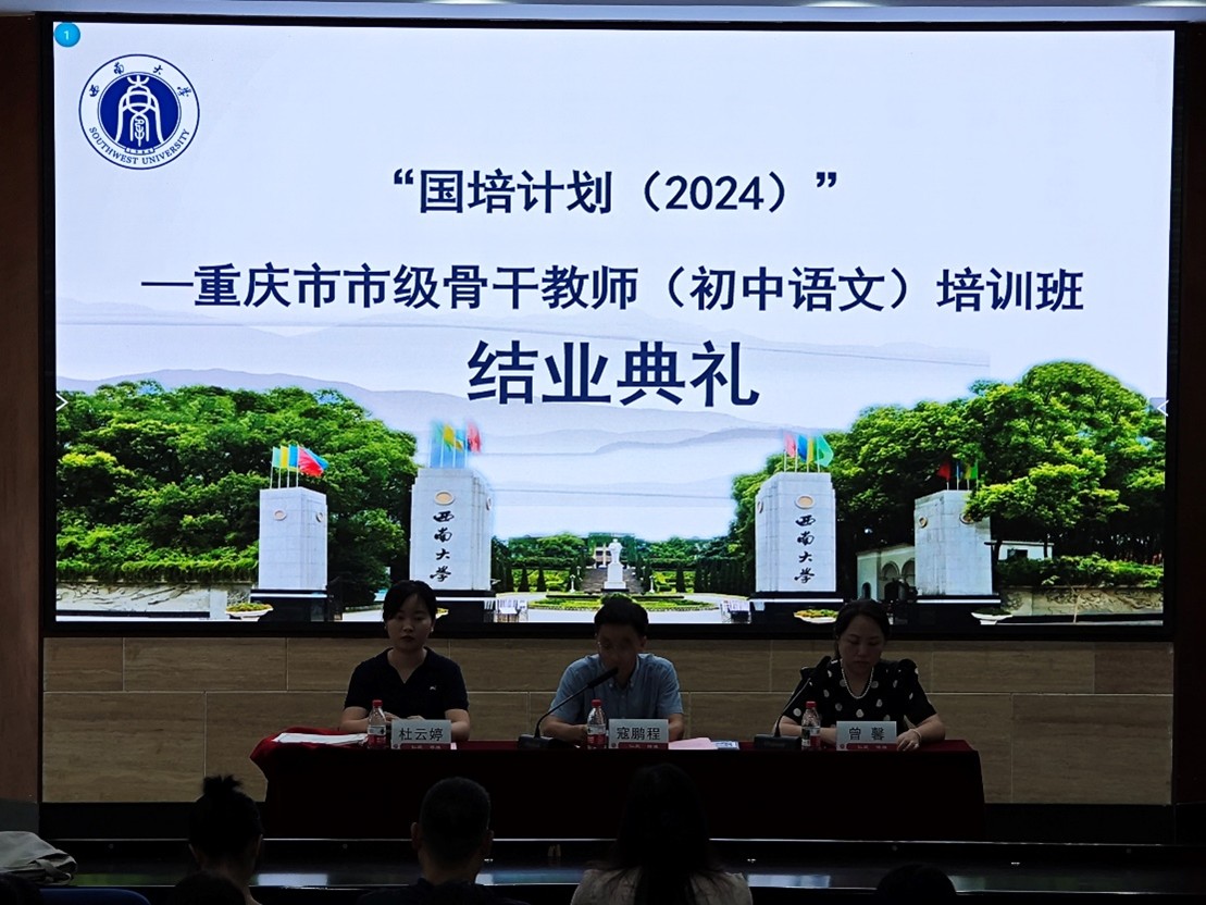 7月8日,yl7703永利集团举行“国培计划(2024)”——重庆市市级骨干教师培养对象培训(第二年)结业典礼。yl7703永利集团副院长寇鹏程,培训项目负责人曾馨,培训班班主任杜云婷出席典礼。结业典礼由寇鹏程副院长主持。来自重庆市市级骨干教师培训项目的全体学员参加了典礼。