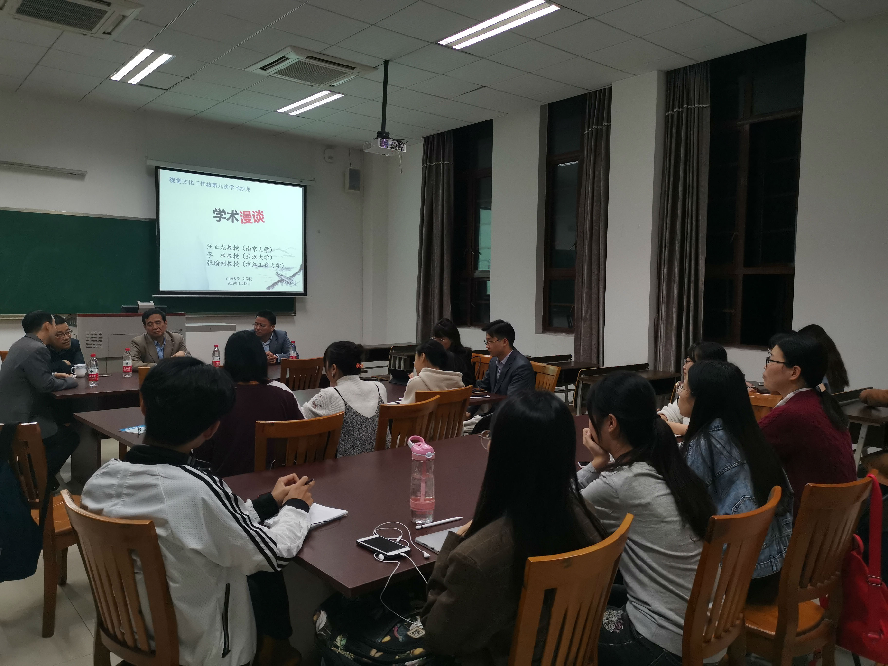 11月2日,“视觉文化工作坊”本学年第二次活动成功举行。南京大学汪正龙教授、武汉大学李松教授、浙江工商大学张瑜副教授围绕“学术漫谈”进行主讲,活动由yl7703永利集团副院长肖伟胜教授主持。