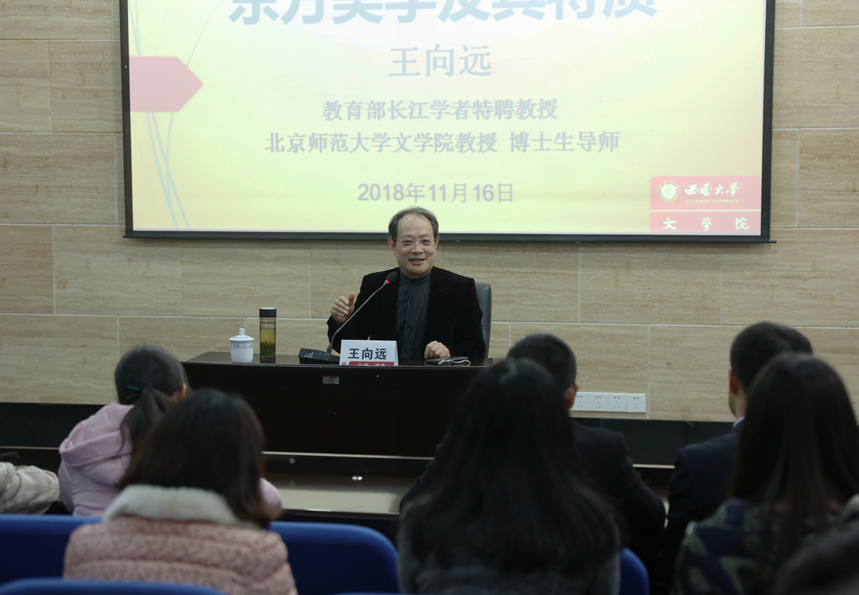 11月16日,北京师范大学教授、博士生导师王向远做客yl7703永利集团名师讲坛,带来了题为“东方美学及其特质”的讲座。本场讲座由yl7703永利集团何宗美教授主持,yl7703永利集团百余名师生参与了讲座。