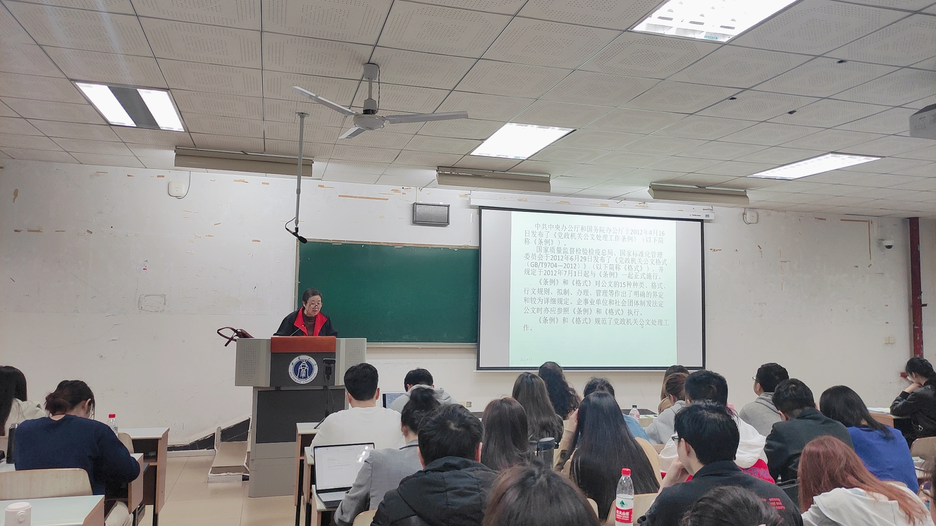 刘俐老师以“公文写作的规范与创新”为题进行了第一讲。以中央相关部门最新颁布的《党政机关公文处理工作条例》为切入点,以中华人民共和国国家标准为依据,介绍了国家现行公文写作的相关常识,强调公文写作要找准重点、对症下药。刘俐老师还从适用范围、种类、写法、例文的逻辑顺序对几种公文类型的写作进行了细致的梳理。整场讲座活泼有趣,老师与学生积极互动,气氛活跃。
