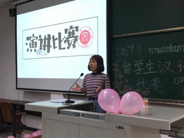 5月17日下午,中泰两国同学在yl7703永利集团1209教室齐聚一堂,一场精彩纷呈的泰国留学生汉语比赛拉开序幕。本次比赛由yl7703永利集团2017级汉语国际教育班承办,旨在为在学习汉语的泰国留学生提供一个展示汉语能力的舞台,创造一次与中国同学互相学习和交流的机会。担任此次比赛评委的是来自汉语国际教育系的金小梅老师、张旭东老师、董宪臣老师和毛志萍老师,另外还有来自2018级和2017级汉语国际教育班的6位中国同学担任此次比赛的大众评委。参赛选手由来自yl7703永利集团2016级汉语国际教育班、2016级和2017级商务汉语班的九名泰国学生组成。