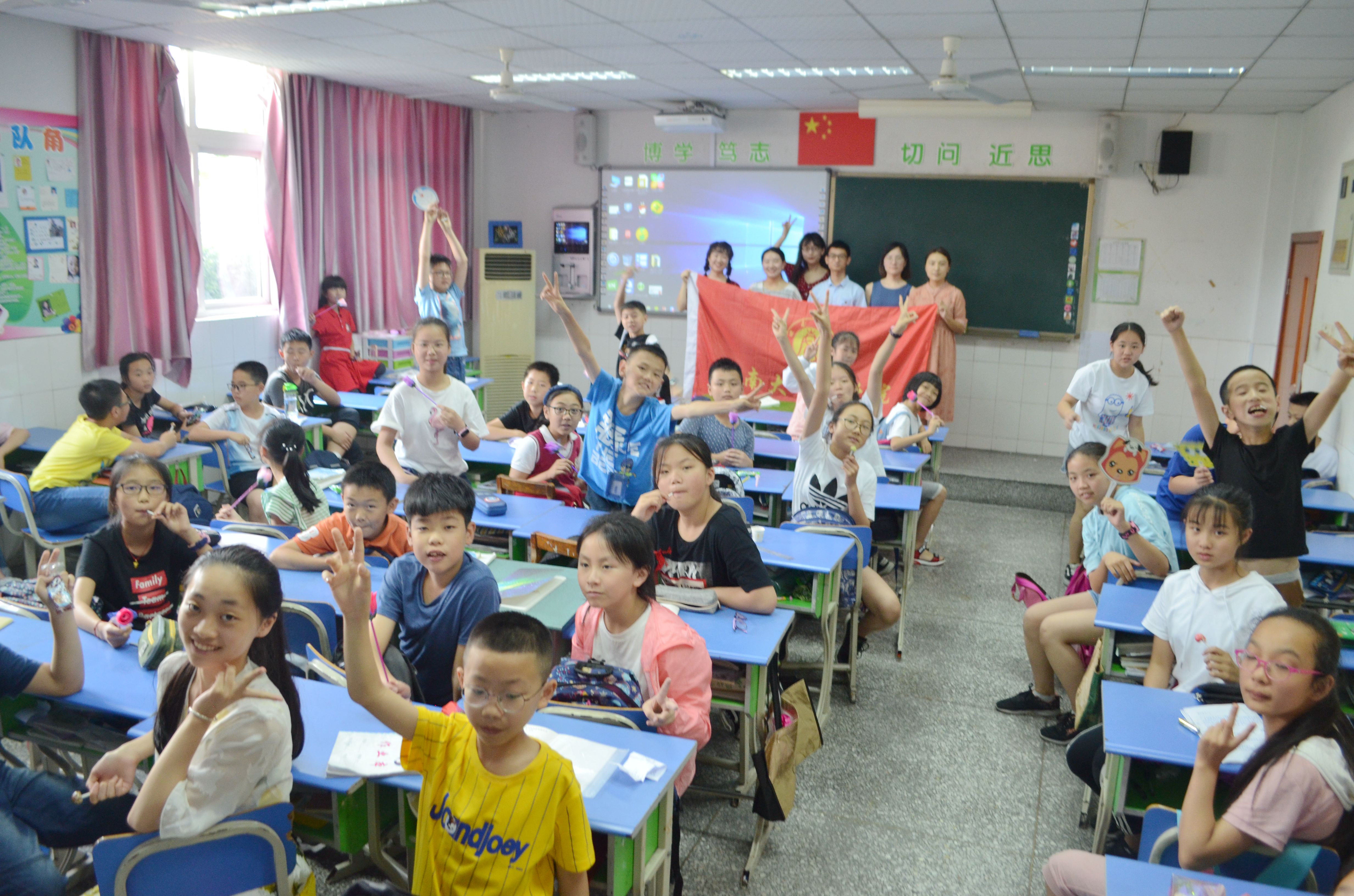 此次宣讲的成员是王成和郭雨霞两位同学,他们分别带来了关于韩非子和《世说新语》的宣讲内容。在宣讲之前,两位成员对五(六)班学生的国学阅读情况进行了初步了解,并依据学生国学基础对宣讲内容作出了适当调整。宣讲时,学生都热情高涨,积极回答问题,齐声朗读,声音洪亮,宣讲气氛十分热烈。王成同学采用游戏互动、视频渲染、课后提问的方式使得国学知识生动有趣起来,让韩非子的睿智幽默“润物细无声”般滋润、渗透进孩子们的心田。郭雨霞同学则通过现场模仿、小组讨论的形式来增强学生对王蓝田性格的理解,孩子们都表现出丰富的创造力与想象力,使得课堂氛围达到了高潮。最后,宣讲团全体成员为五(六)班的学生分发了精美的小礼物并合影留念。