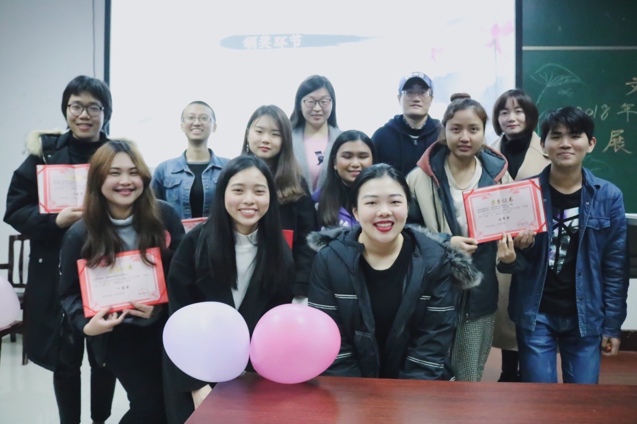 最终,肖元媛与刘晨获得一等奖,唐古、刘诗和樊凡获得二等奖,金宁、李泰、叶子清和周莉燕获得优秀奖。2015级汉语国际教育班(泰)、2016级汉语国际教育班(中泰)、2016级商贸汉语班、2017级汉语国际教育(中泰)及2017级商贸汉语班获得优秀组织奖。至此,本次比赛圆满结束。