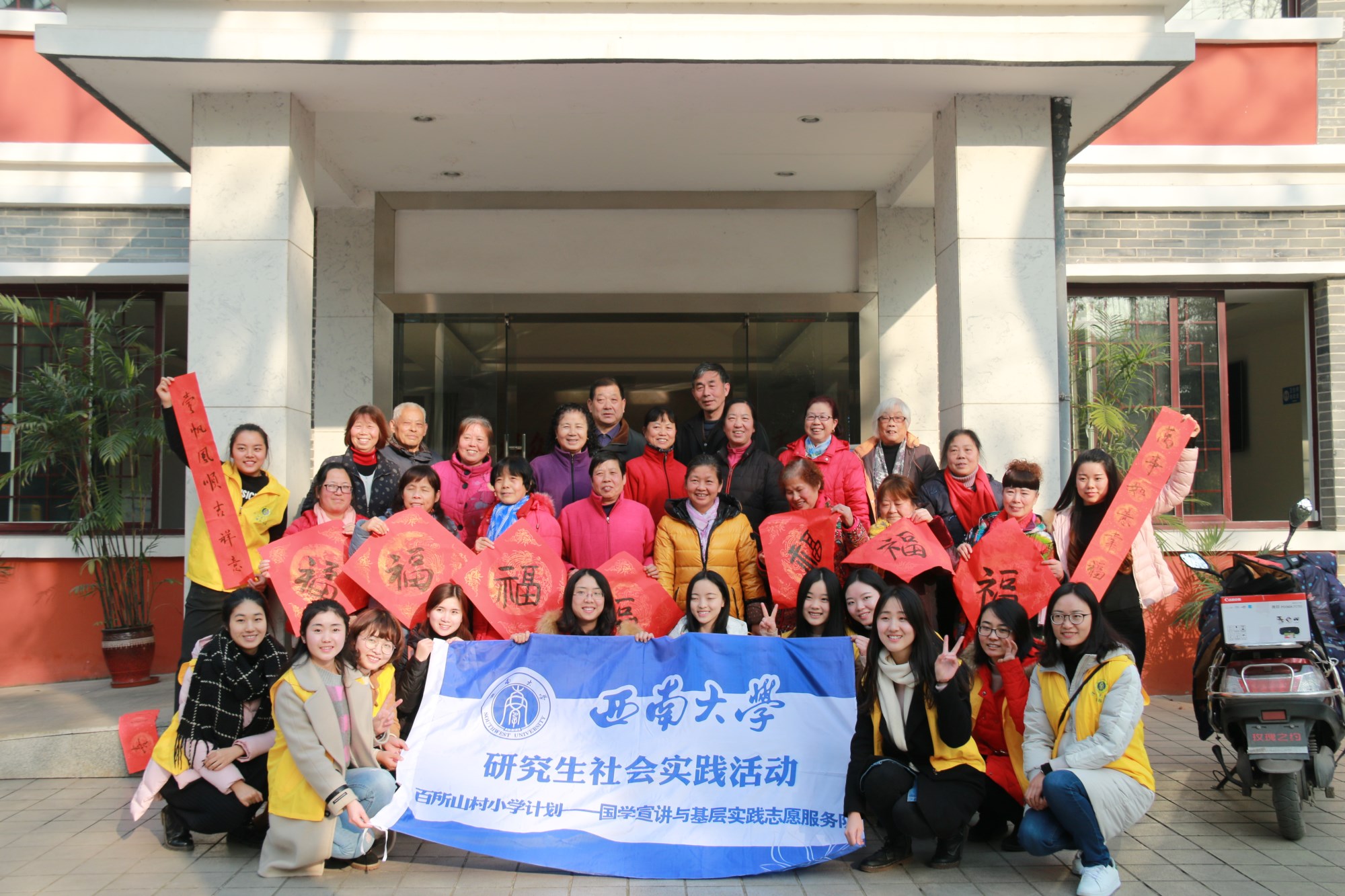 1月10日下午,“爱在北碚,墨香歇马”寒假社会实践活动正式展开,作为活动之一的“华伟社区市民学校迎新春游园活动”如期举行。此次活动旨在响应国家“服务基层、奉献基层”的口号,在切实服务之中了解民情、感知社情,树立和践行社会主义核心价值观。