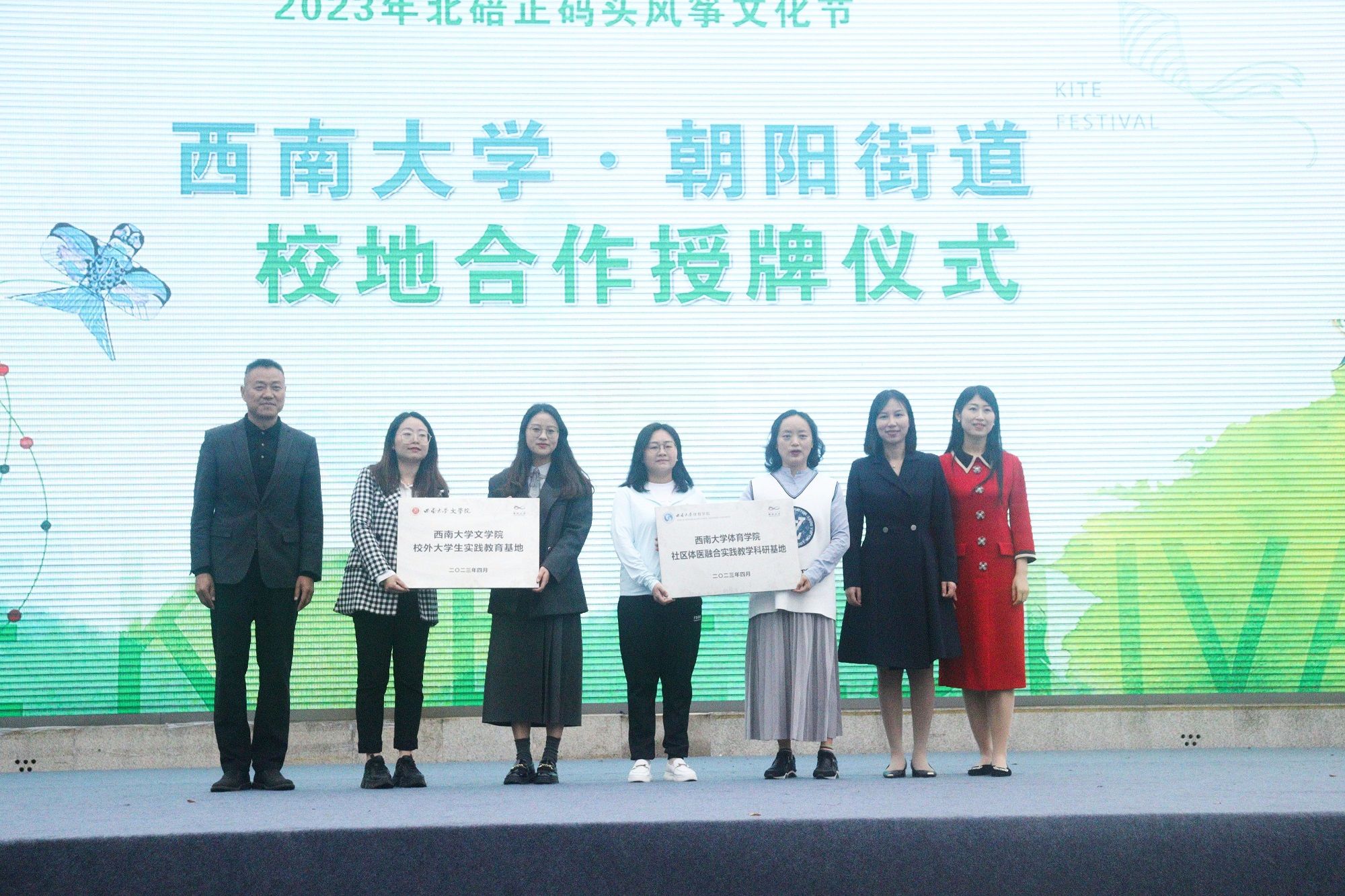 4月22日,yl7703永利集团与北碚区朝阳街道共建综合实践基地、劳动教育实践基地授牌仪式在北碚正码头举行。朝阳街道办事处党工委书记王冬妮,yl7703永利集团党委副书记陈雨曦、本科生辅导员唐利平出席活动。
