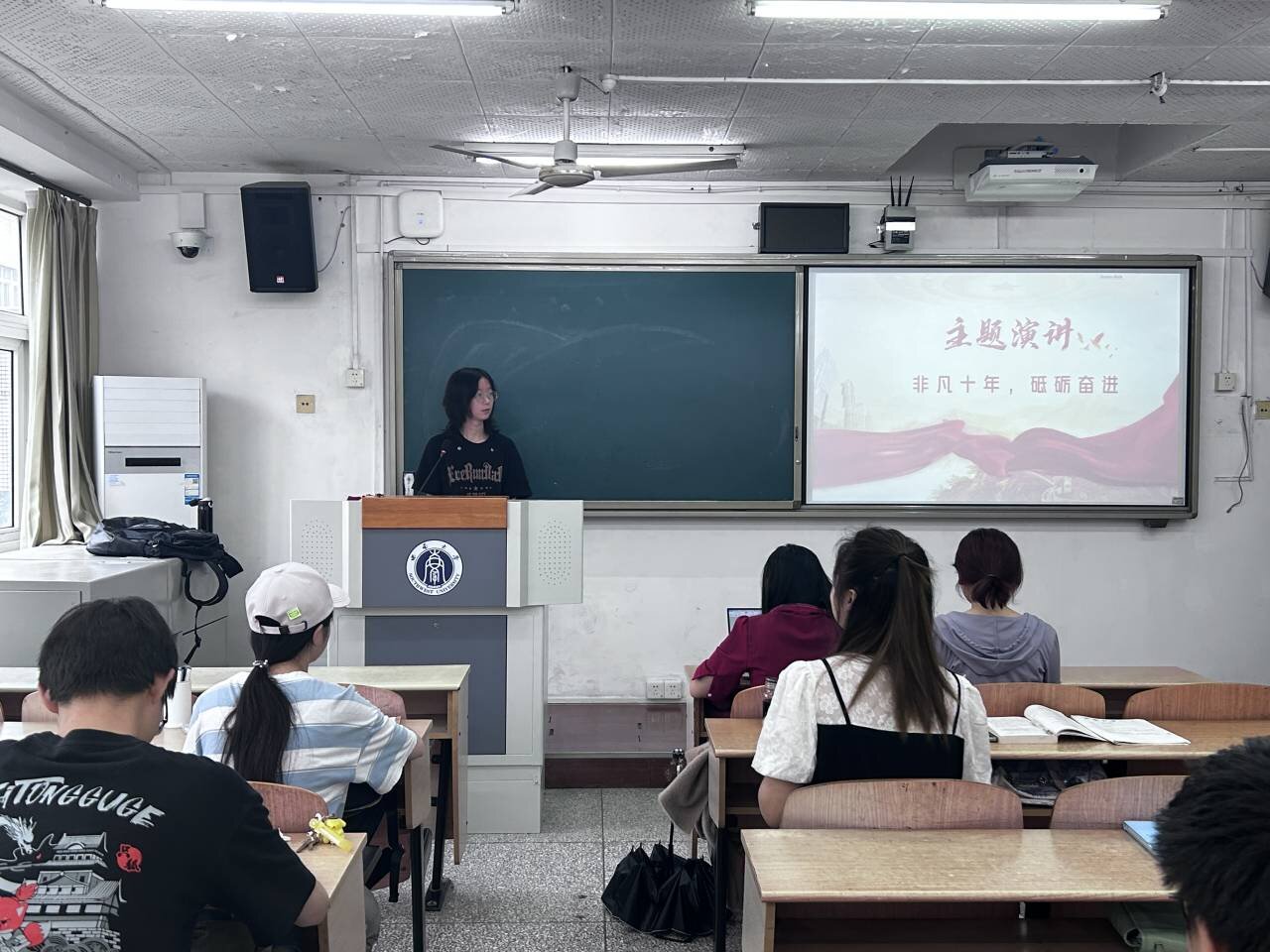 首先,团支书带领同学们阅读学习了党的二十大报告中关于“过去五年的工作和新时代十年的伟大变革”的内容。随后,各团支部通过朋辈宣讲、分组讨论、演讲朗诵等形式进行学习研讨。同学们结合自身实际,讲述新时代十年发展成就,并讨论习近平新时代中国特色社会主义思想对青年学生的引领作用。最后,大家写下心得感悟,从中感受思想伟力,汲取奋进力量。