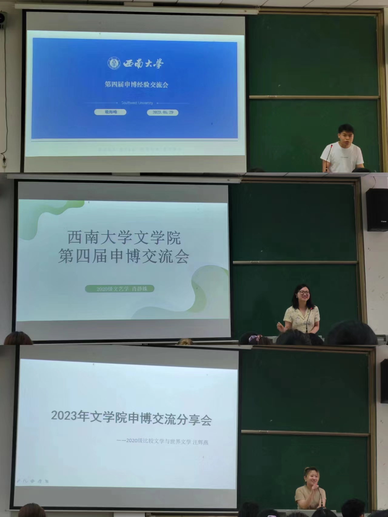 最后,作为成功申博的学生代表,戢海峰、肖静姝和汪辉燕结合自身经历,多方面分享了申博的经验。戢海峰认为,读博需要有坚定的信念,若有多种选择则可为就业早做准备,若将读博视为唯一选择则笃志前行。肖静姝分享了博士计划书的重要性,其内容在初审和复试环节是不同的,需要进行斟酌与完善。汪辉燕分享了自己在跨专业申博、院校选择及心态调整等方面的个人心得。