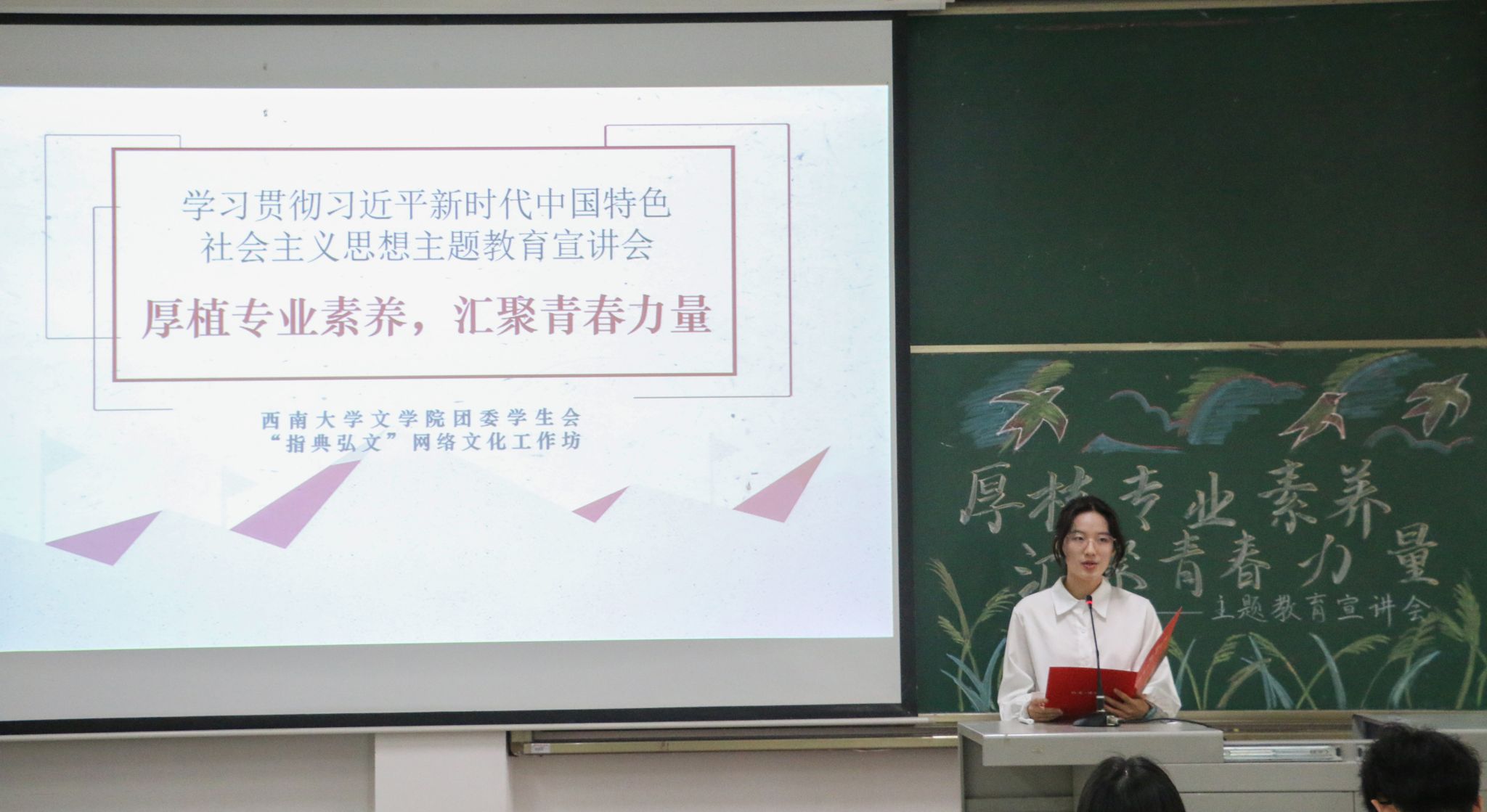 为推动习近平新时代中国特色社会主义思想和党的二十大精神入脑入心,充分发挥青年朋辈示范引领作用,6月6日,yl7703永利集团举办“厚植专业素养,汇聚青春力量”主题宣讲会。2019级公费师范专业马宁同学、2020级汉语言文学专业博雅班曾梓莘同学就如何全方位提升专业素养,服务人才强国战略进行主题分享,yl7703永利集团党员骨干和团员骨干参加宣讲会。