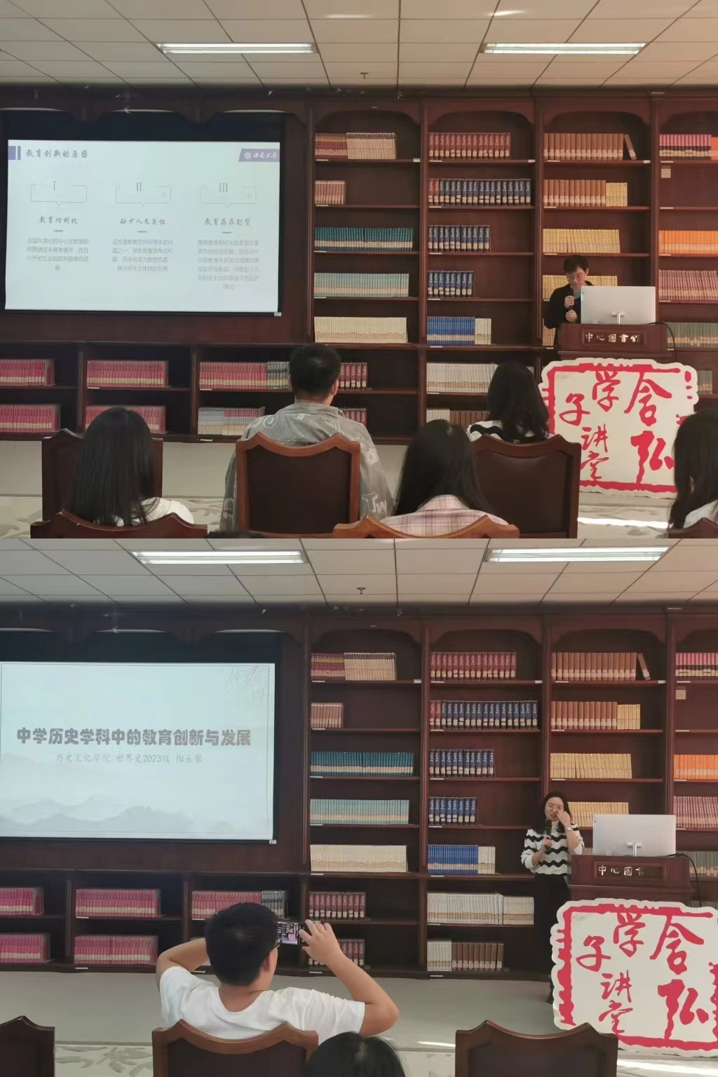 阳采馨立足中学历史学科中的教育创新和发展,将理论与实践相结合,生动地向同学们描绘了中学历史教育发展新趋势。她介绍了个性化教育、跨学科合作、虚拟现实和增强现实技术的应用、开放式资源和在线学习等已然在当代中学历史教学中扮演重要角色的要素,并结合自己对西南地区的教育体验,分析这些要素在中学历史教育实践中的具体运用,探索教育发展的可行方向。