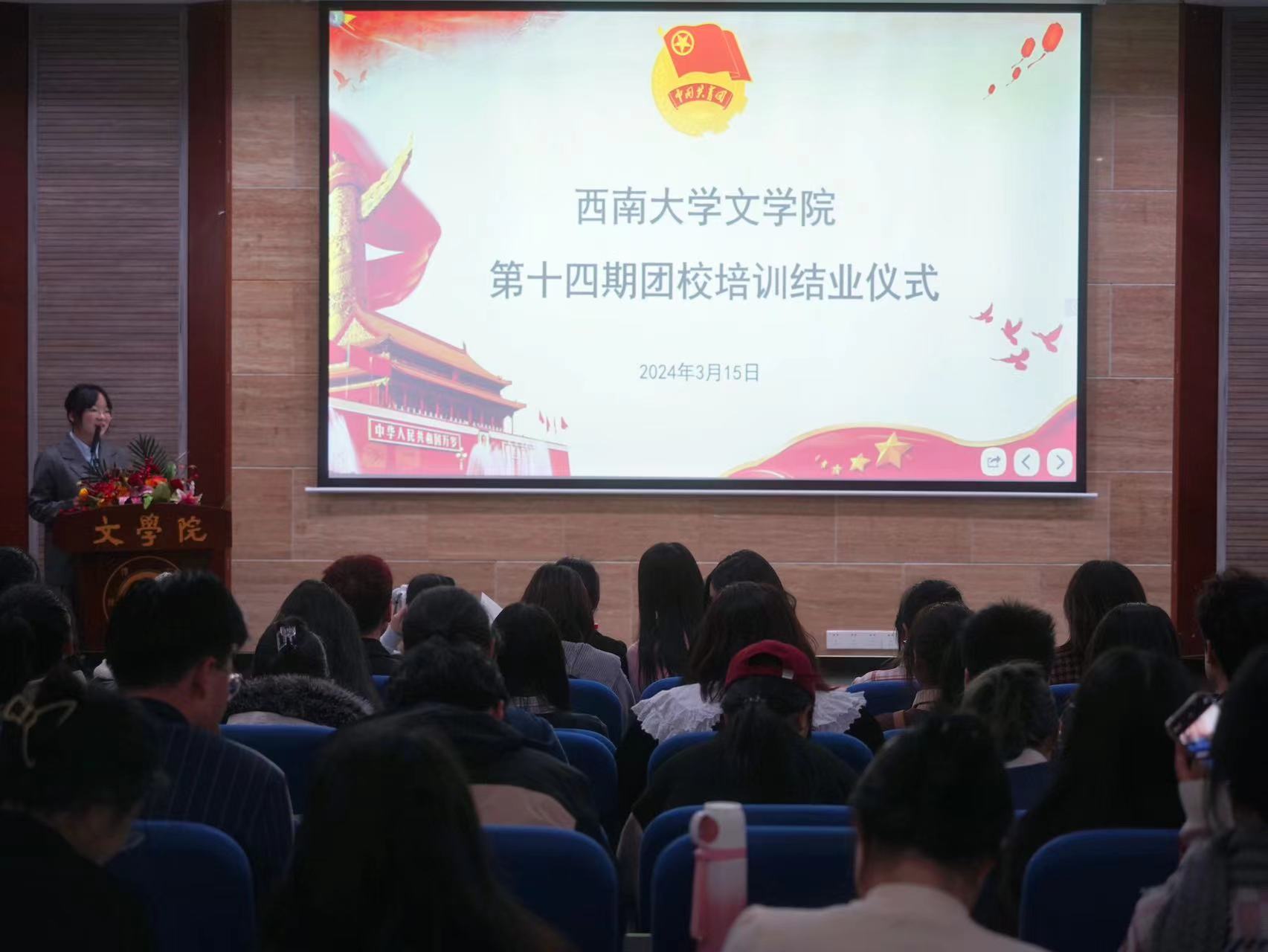 活动开场,全体参会人员齐唱团歌。结业仪式中,陈雨曦副书记致辞并对全体共青团干部提出三点要求:一是以身作则,奉献与修身并行;二是知行合一,理论与实践并重;三是学无止境,素养与能力并举。随后,陈雨曦副书记为10位学员颁发“优秀学员”荣誉称号。最后,2023级本科生李雪同学作为优秀学员代表发言,号召学员们不断提高思想觉悟,真正成为一名合格的共青团员。