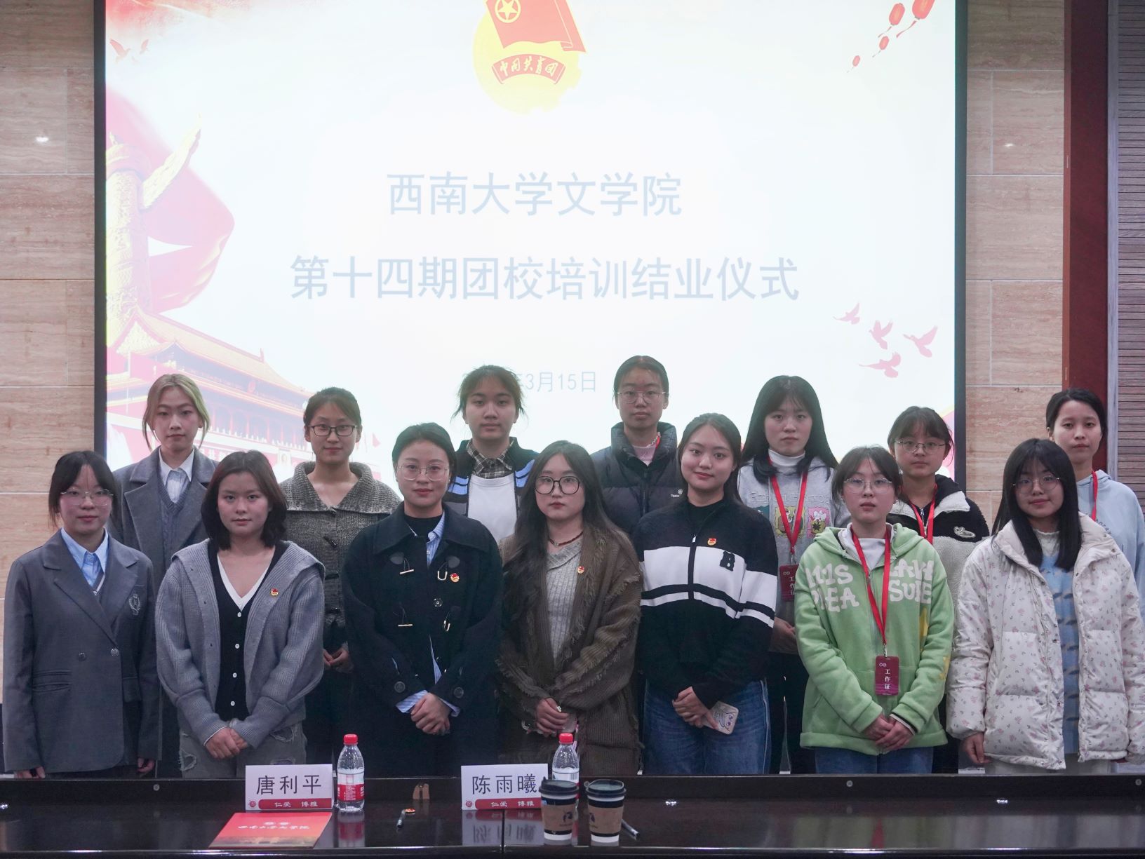 3月15日,第十四期团校培训结业仪式在yl7703永利集团101报告厅举行。yl7703永利集团党委副书记陈雨曦、团委书记唐利平出席本次仪式。