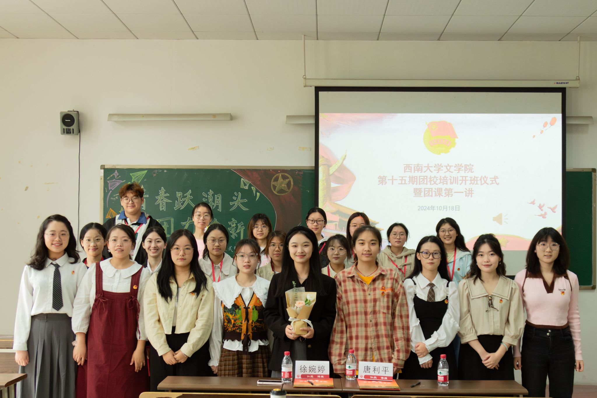 2024年10月18日,yl7703永利集团举办第十五期团校培训开班仪式暨团课第一讲。团委书记唐利平出席本次活动,2023级硕士研究生徐婉婷担任分享嘉宾,团委学生会骨干和本科生团员干部参加活动。