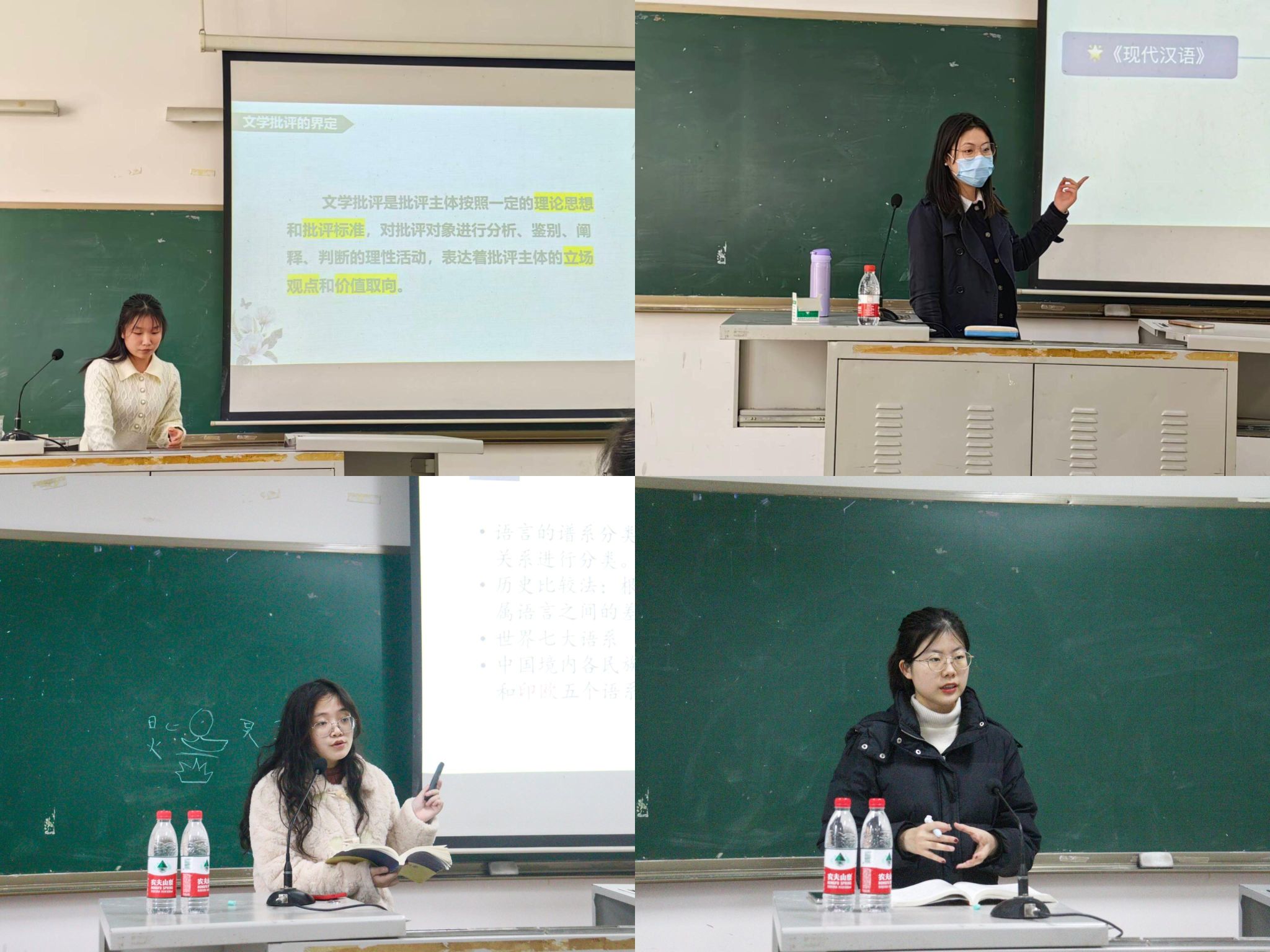 10月13日和19日,yl7703永利集团开展了2024年第五期“朋辈帮扶”活动。汉语言文学专业学生黄庭颍,汉语言文学(师范)专业学生赵秉珠、刘奕菲和王桉钰四位同学分别进行了语言学概论、古代汉语A、古代文学A和现代汉语A的讲解。