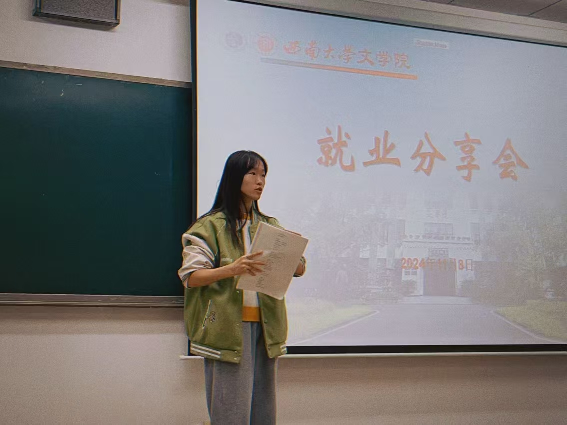 11月8日,yl7703永利集团举办师范生实习就业分享会。2022级研究生陈钰、2021级汉语言文学(师范)专业本科生张珂睿和赵秉珠担任分享嘉宾,2022级全体师范生同学参加会议。