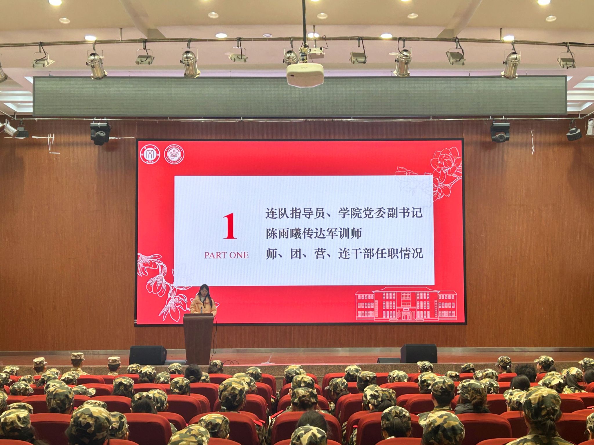 大会伊始,连队指导员、陈雨曦书记向与会师生传达军训师、团、营、连干部的任职情况,确保军训工作的顺利开展和组织架构的明确。随后,陈雨曦书记发表军训动员讲话,强调了军训的重要性和意义,向与会学生提出了立志爱国、服从纪律、端正态度、顽强拼搏四项要求,鼓励全体新生以饱满的热情和坚定的意志投入到军训中,通过军训锻炼自己的体魄和意志,培养团队协作精神和吃苦耐劳的精神。