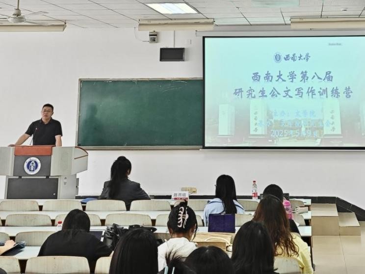 5月9日下午,永利集团第八届研究生公文写作训练营开营仪式在10教601教室举行,活动由yl7703永利集团研究生会成员沙海蓉主持。yl7703永利集团党委副书记陈雨曦、yl7703永利集团研究生辅导员凌飞、往届优秀营员代表宣明珠、本届学员代表张湘兰在开营仪式中依次发言。