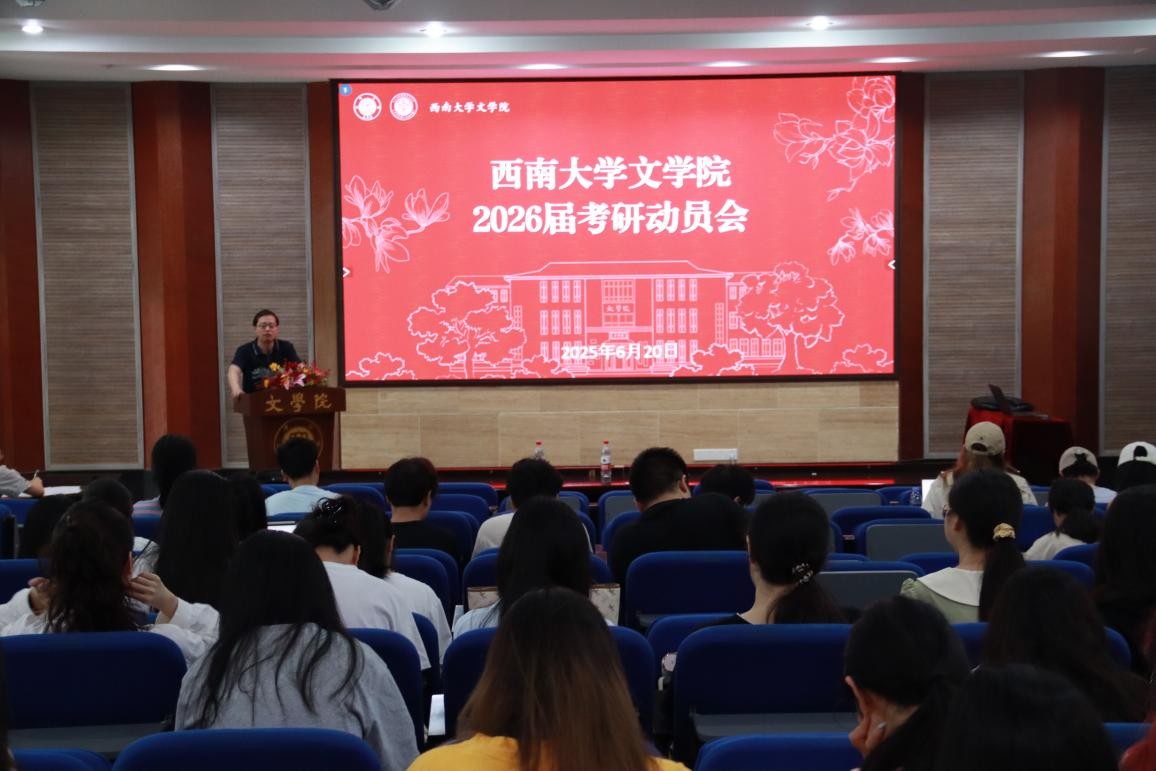 最后,张春泉副院长做考研指导讲话。他从“功利”与“超功利”的双重视角出发,强调考研是提升学术能力、拓宽发展道路的重要途径,指出人文学科学子通过深造提升核心竞争力的重要性,鼓励大家“享受考研过程”。结合学科特点,他提出三点备考建议:一是早规划、重基础,夯实专业功底;二是善借力、巧借势,充分利用学院资源;三是调心态、稳节奏,保持身心健康。
