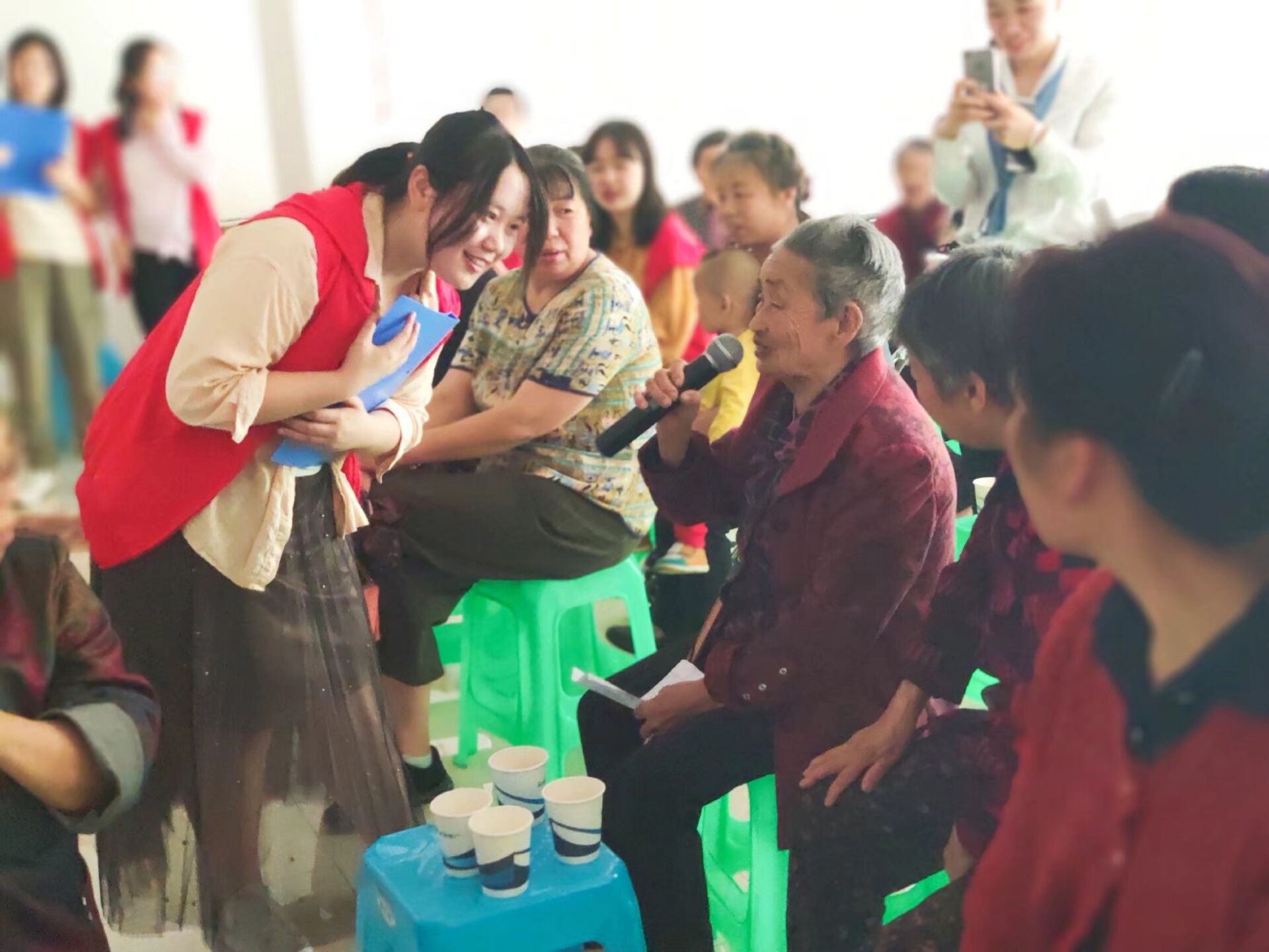 李雨矫同学以一个七岁女童被高空坠落物砸伤的小视频讲述了高空抛物的危害性,讲解了针对性的防范措施,还针对饲养宠物问题提出了解决方案。李新新同学则就垃圾乱扔乱堆问题、草坪踩踏问题与健身娱乐问题进行了宣讲。随后进行了有奖竞答活动,大家积极发言抢答,气氛十分活跃。接着,志愿者们带来小品《关键时刻》,通过讲述一位老人受电信诈骗的经历,启示老人们要增强防范诈骗意识,学习防骗措施。最后,老人们分享了身边人被诈骗的经历与防诈骗的经验。