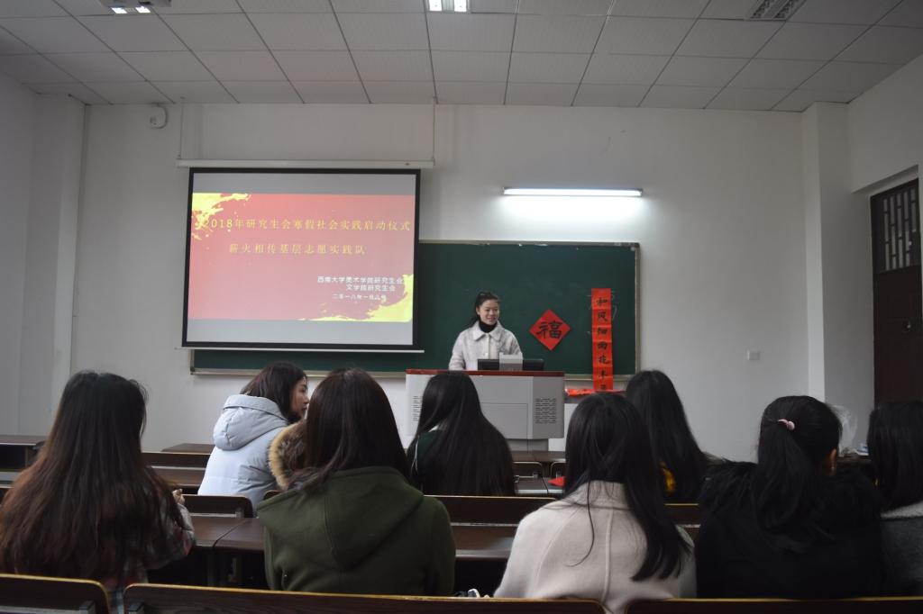 此次会议首先由实践指导老师岳洋发表讲话,她着重强调了此次活动的安全及纪律组织问题,并指出此次活动的目的在于展现当代大学生的精神风貌和专业素质,融入课堂,展现西大风采。之后,各位队员就实践内容及具体流程作最后的商讨,yl7703永利集团研究生会主席程娅娜与美术学院研究生会主席陈勤对活动细节作最终商定。至此,薪火相传基层志愿实践队寒假社会实践正式启动。