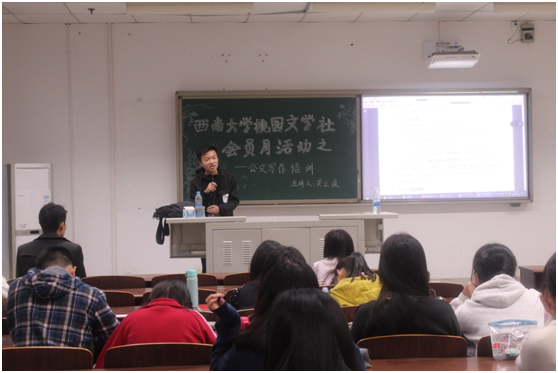 2017年11月12日下午三点,26教309教室内,在现场同学们热烈的掌声中,政治与公共管理学院学生会办公室主任黄云波的公文写作小课堂正式开课。