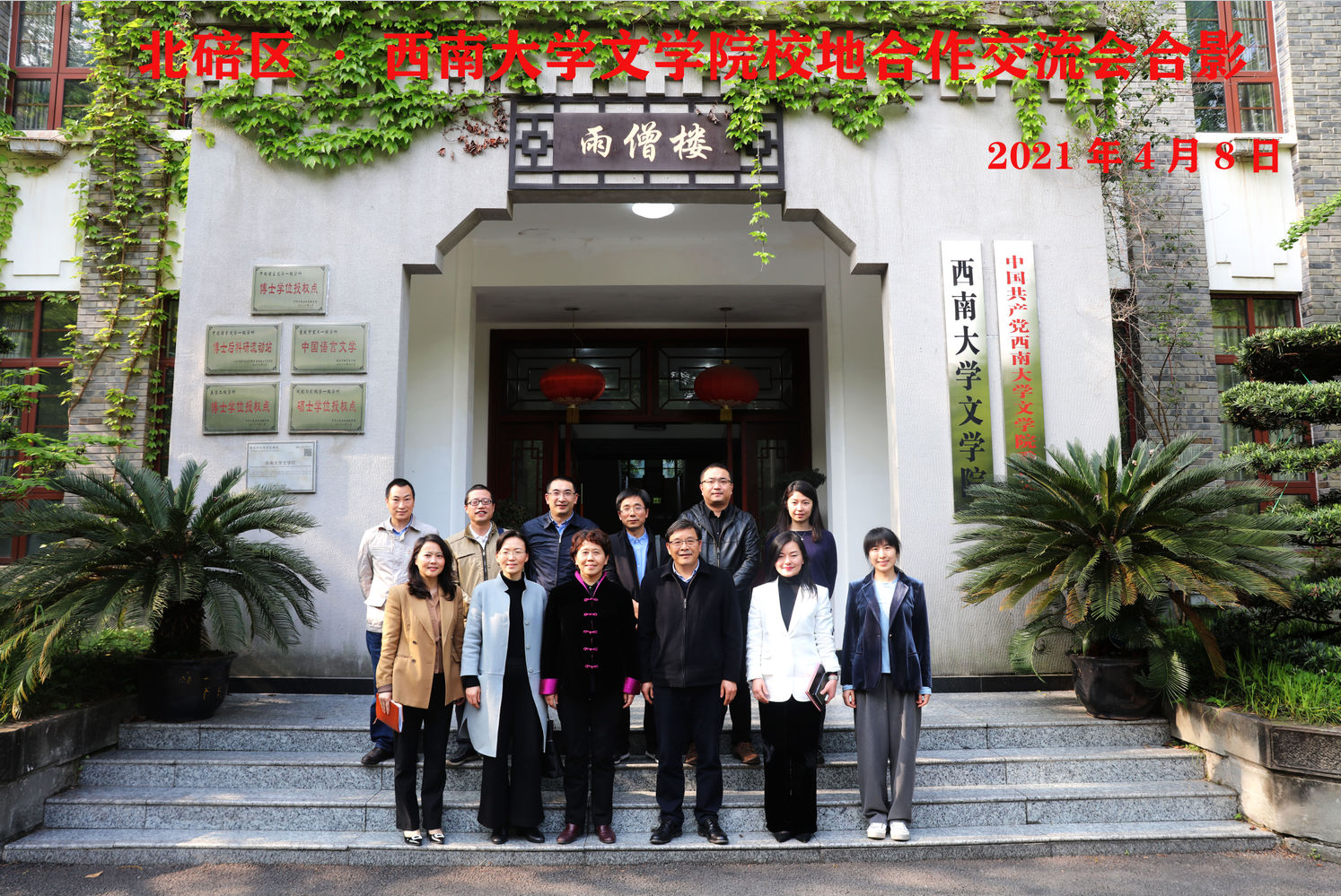 4月8日,中共北碚区委常委、宣传部部长江绪容率队来院交流校地合作,yl7703永利集团院长王本朝与江绪容一行交流座谈。