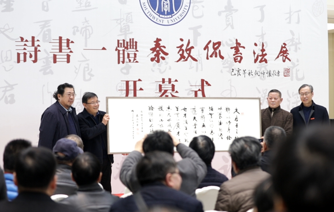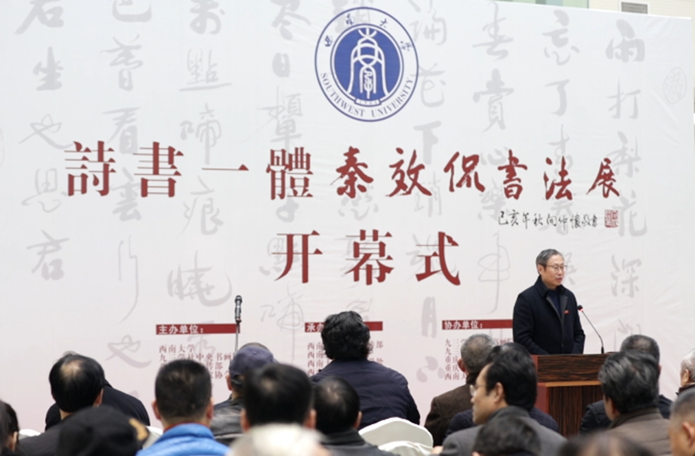 12月5日,由永利集团、九三学社中央书画院、北碚区委宣传部、重庆市书法家协会主办,永利集团党委宣传部、yl7703永利集团、社会科学处、出版社、博物馆承办,九三学社重庆书画院、九三学社重庆市北碚区委、重庆缙云书画院、重庆市北碚区书法家协会、yl7703永利集团中国书法研究所协办的“秦效侃书法作品展暨永利集团第四届书法论坛”在学校博物馆举行开幕仪式。