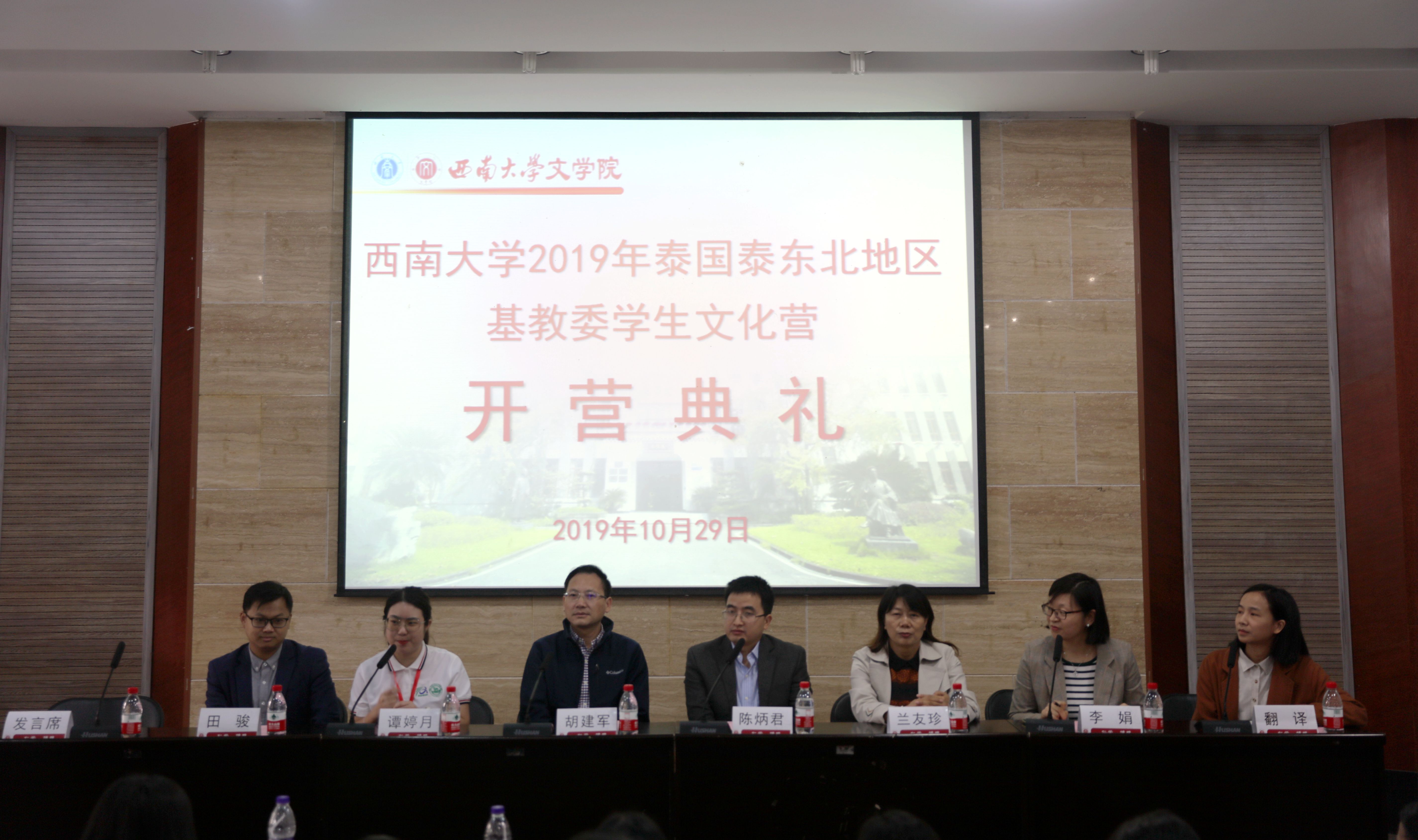 10月29日,永利集团2019年泰国泰东北地区基教委学生文化营在我院开营。泰国泰东北地区基教委学生文化营领队谭婷月老师,永利集团国际处陈炳君副处长,yl7703永利集团党委胡建军书记、网络与继续教育办公室兰友珍主任、文化营班主任李娟老师和田骏老师出席本次活动,文化营全体19名营员参加了活动。开营典礼由李娟老师主持,泰国留学生刘璐同学担任翻译。