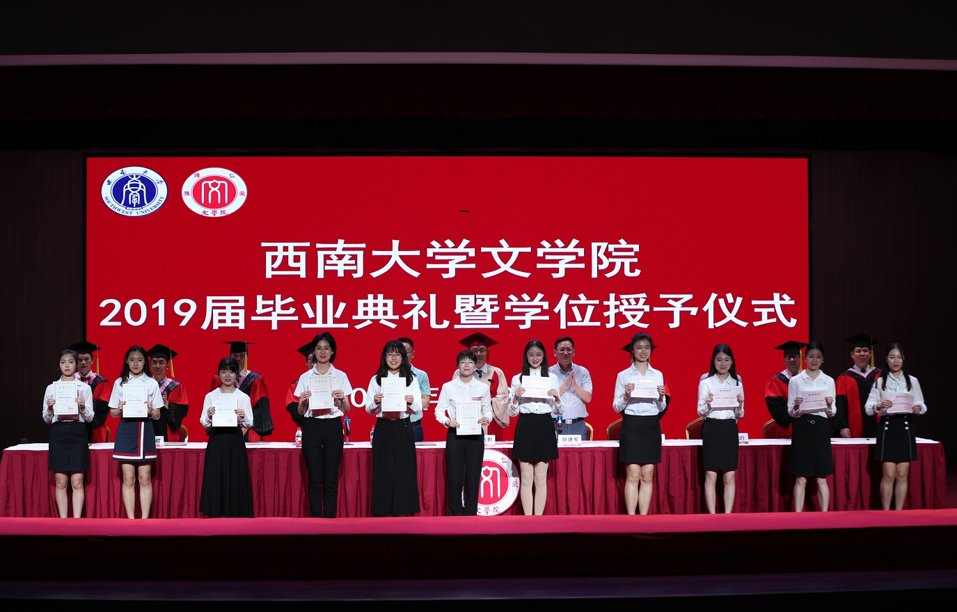 肖伟胜副院长和张春泉副院长先后宣读毕业决定和表彰决定。毕业生代表依次上台领取毕业证书;重庆市及永利集团优秀毕业研究生代表、优秀学位论文等荣誉获得者代表分别上台接受表彰。
