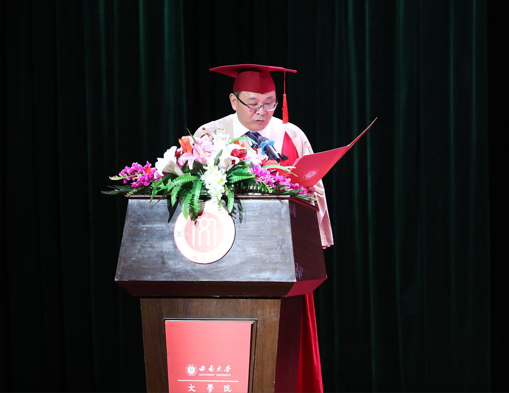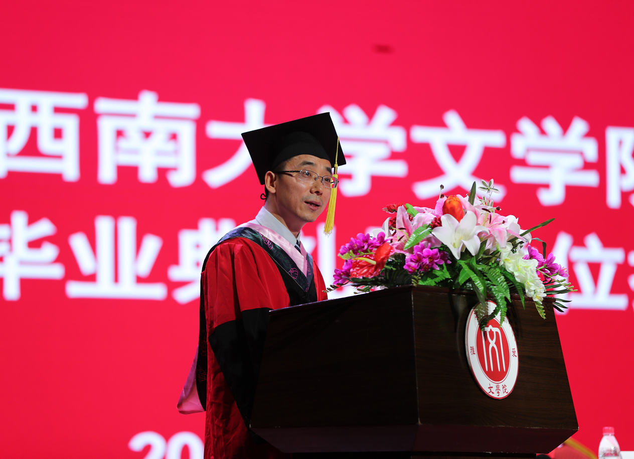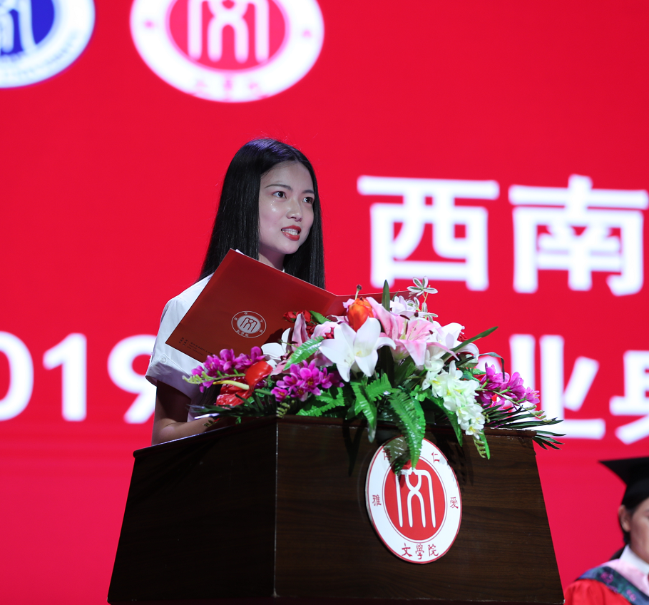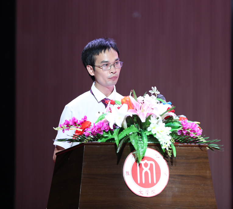 本科2015级汉语言文学(公费师范)专业林妲同学、中国现当代文学专业博士毕业生蓝善康同学先后代表毕业学生发言。林妲同学在校期间,入选 “国家卓越教师培养计划”,担任校学生会副主席、校学委会副主席,获得唐立新奖学金等多项校级奖学金。她分享了大学四年在yl7703永利集团的成长与收获:勇于直面生活,正确看待遗憾;有选择的魄力和承担选择的勇气;不断提升学习探究和自我反思的能力。蓝善康同学向春风化雨的育人环境、老师的循循善诱、好友的携手共进、家人的慷慨奉献表示感谢,分享了自己在研究生生涯关于学习的最大感受:逝者如斯不舍昼夜,执着让我们勇往直前。做学问要全心贯注、甘于寂寞;要有品格坚守和创新思维;要始终如一、悲悯天下。