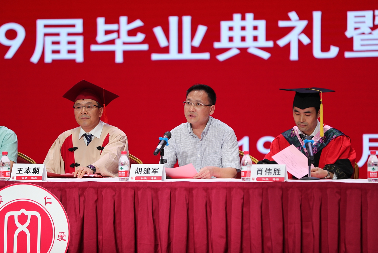 第一阶段,进行毕业典礼。院长王本朝、党委书记胡建军、副书记 纪委书记邓洪波、副院长肖胜伟、副书记陈玥、副院长张春泉;李永东教授、寇鹏程教授、李应志教授、杨怀源教授、王春玲教授出席毕业典礼,毕业典礼由yl7703永利集团党委胡建军书记主持。