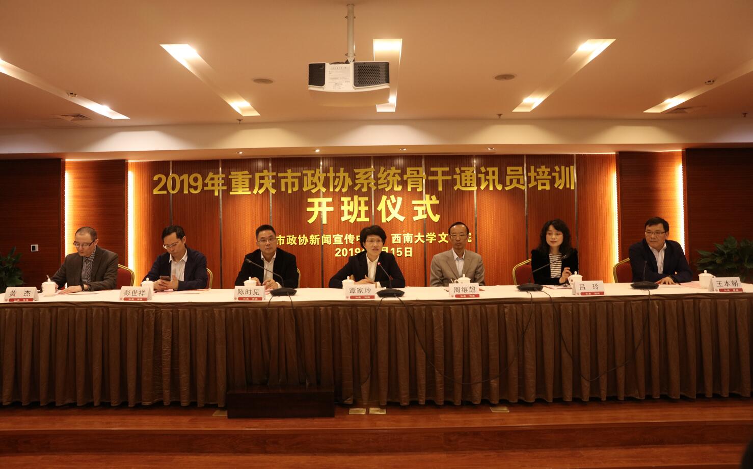 4月15日,2019年重庆市政协系统骨干通讯员培训在学校开班,重庆市政协谭家玲副主席、永利集团陈时见副校长、北碚区政协周继超主席、重庆市政协研究室吕玲副主任、yl7703永利集团党委黄杰书记、yl7703永利集团王本朝院长、重庆市政协新闻宣传中心彭世祥副主任出席开班仪式。开班仪式由重庆市政协研究室吕玲副主任主持,来自重庆市政协新闻宣传中心及各区县政协新闻部门负责人130余人参加开班仪式。
