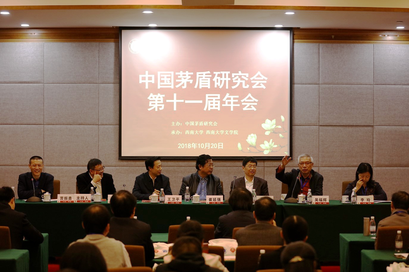 第一组大会发言由吴福辉教授主持,北京师范大学王泉根教授、辽宁师范大学王卫平教授、上海戏剧学院杨扬教授、中国人民大学杨联芬教授、北京语言大学李玲教授、永利集团李永东教授分别发言,广西师范大学刘铁群教授作点评。他们分别从“茅盾与中国百年儿童文学的演进”“茅盾研究的历史与沿革”“茅盾与女性问题”“茅盾与重庆的书写”等角度展开论述,刘铁群教授作点评。