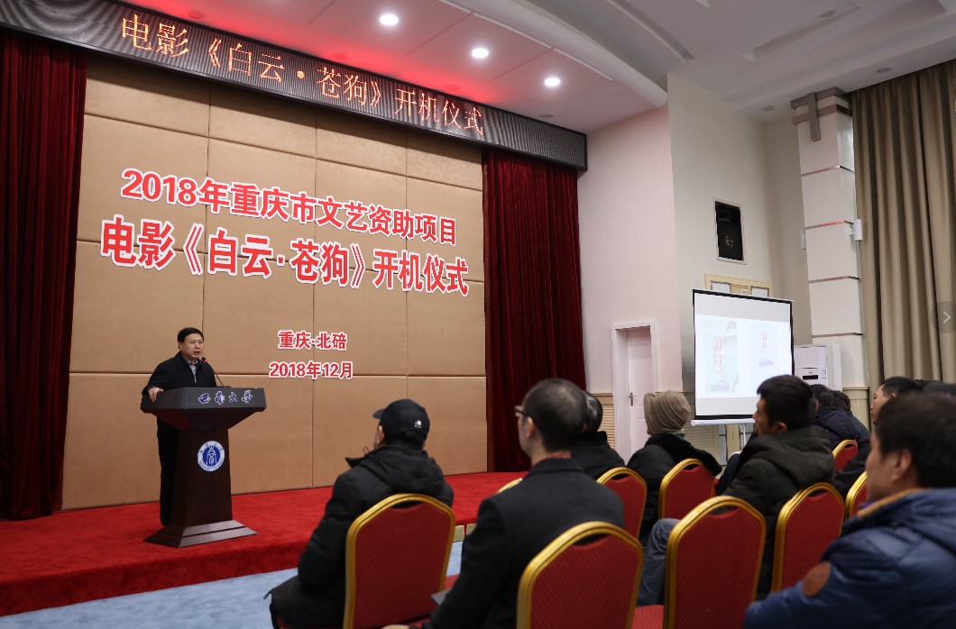 12月7日下午,由2018夏衍电影文学奖一等奖作品改编,重庆市精品文艺资助项目,文艺电影《白云·苍狗》开机仪式在学校举行。