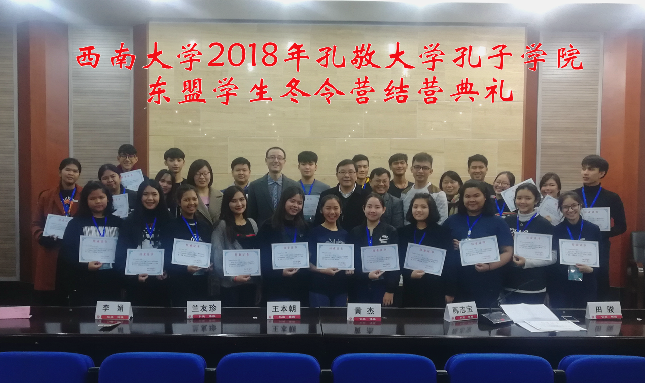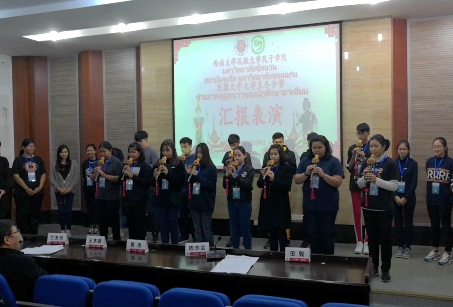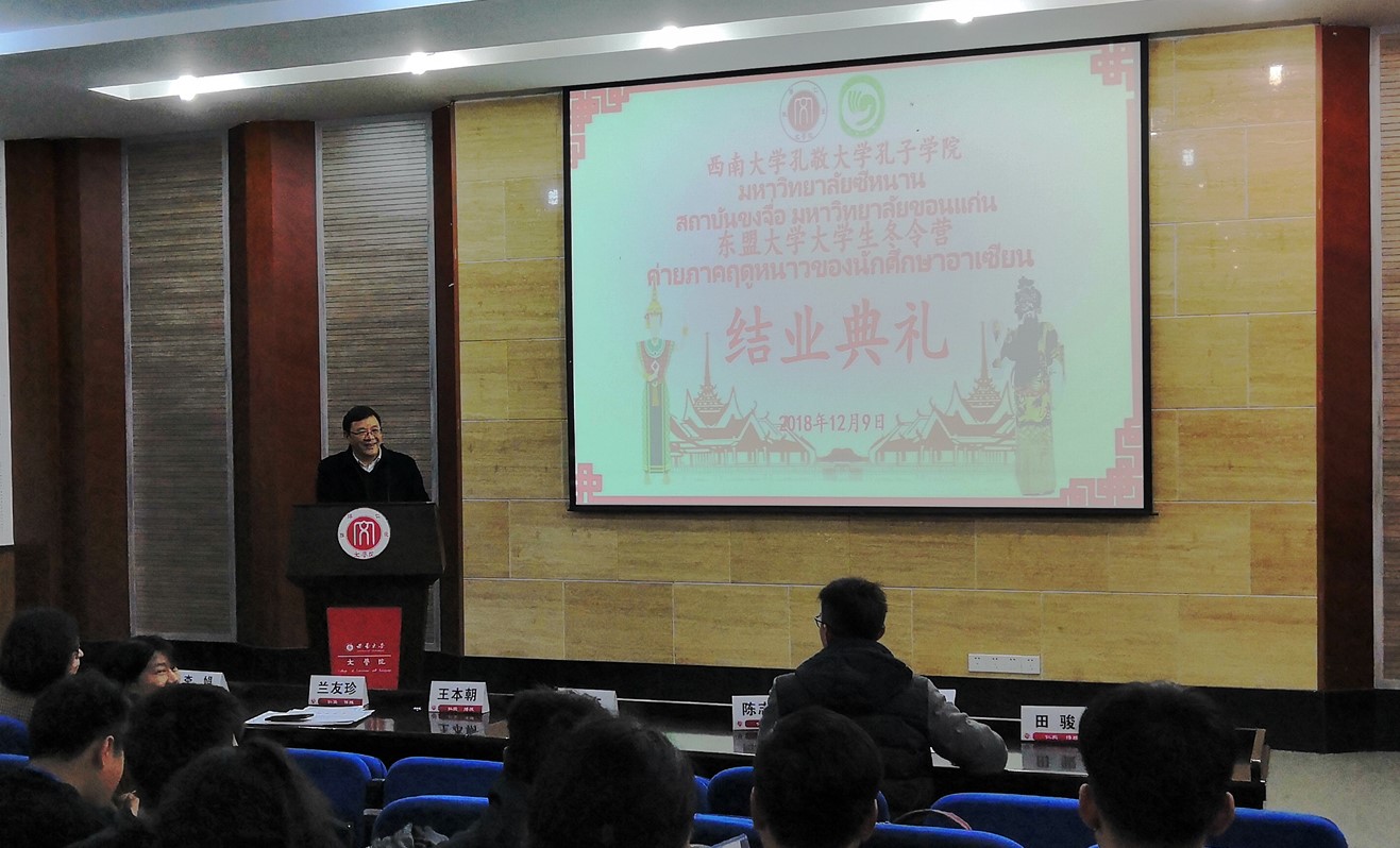 王本朝院长向大家顺利完成冬令营的各项活动表示热烈祝贺,肯定了大家在冬令营期间的优异表现,认为学员们充分展现了泰国人民友好、善良的形象。王本朝院长表示,冬令营学员们在两周的时间里体验了重庆的饮食、风俗、文化、语言,对重庆有了一定的了解。中国地大物博,中华文化博大精深,希望大家以后能多来中国,多感受中国文化,回到泰国后,继续做中泰文化交流的使者。