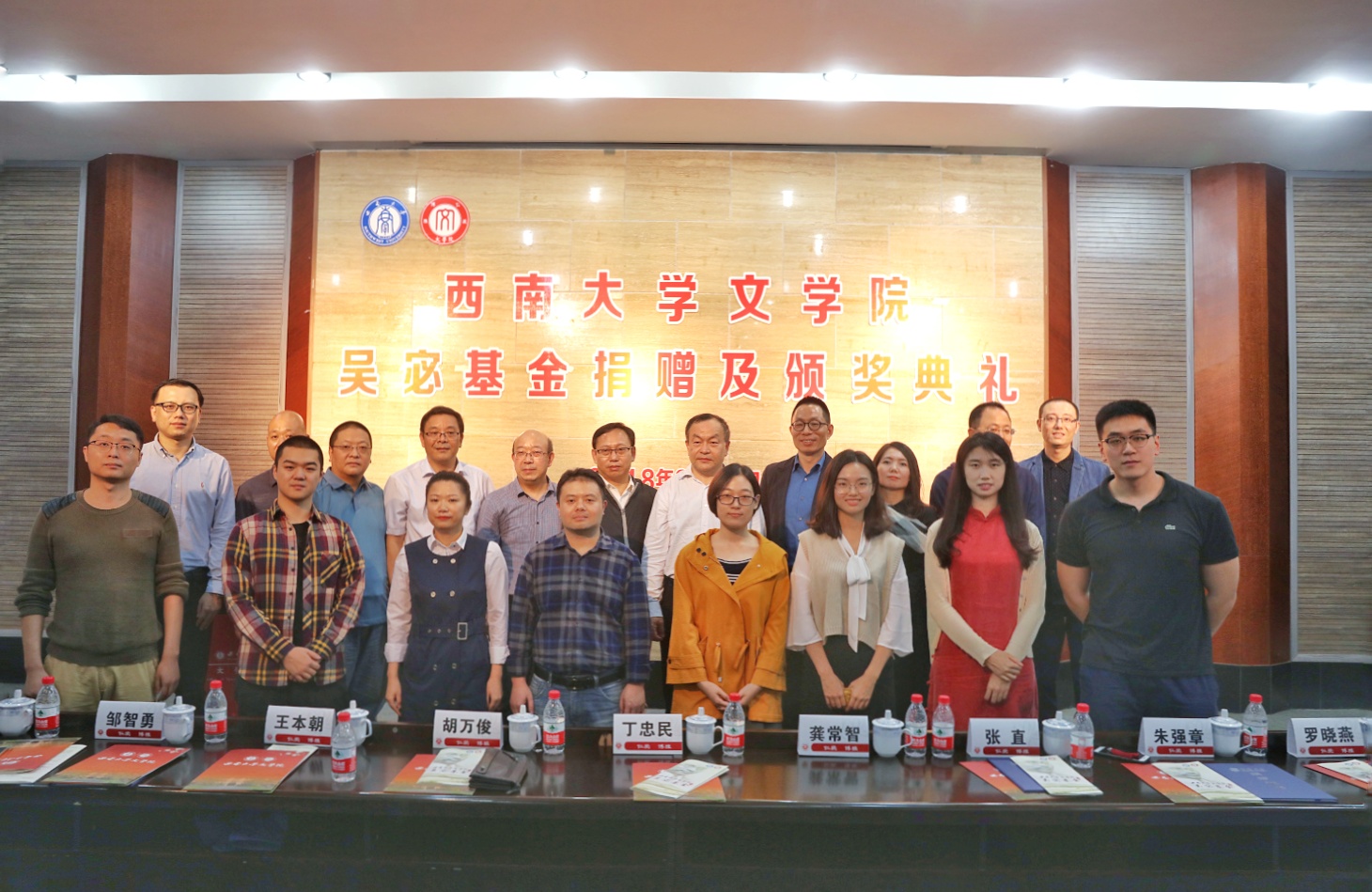 9月30日,yl7703永利集团吴宓基金捐赠及颁奖典礼在yl7703永利集团报告厅隆重举行,吴宓基金捐赠者代表:原西南师范大学中文系92级校友、重庆中山文化产业投资有限公司董事长张直、原西南师范大学中文系93级校友、北京时间碎片新媒体有限公司董事长邹智勇、原西南师范大学中文系95级校友、尚尚传媒集团董事长朱强章、原西南师范大学中文系95级校友、重庆市北碚区静观花木园林有限公司经理陈小泽、原西南师范大学中文系95级校友、重庆信帆建材有限公司董事长罗晓燕,永利集团副校长丁忠民,对外联络部部长、教育基金会秘书长龚常智,yl7703永利集团党政领导出席典礼,全体获奖学生和yl7703永利集团部分师生代表参会。典礼由yl7703永利集团党委书记黄杰主持。