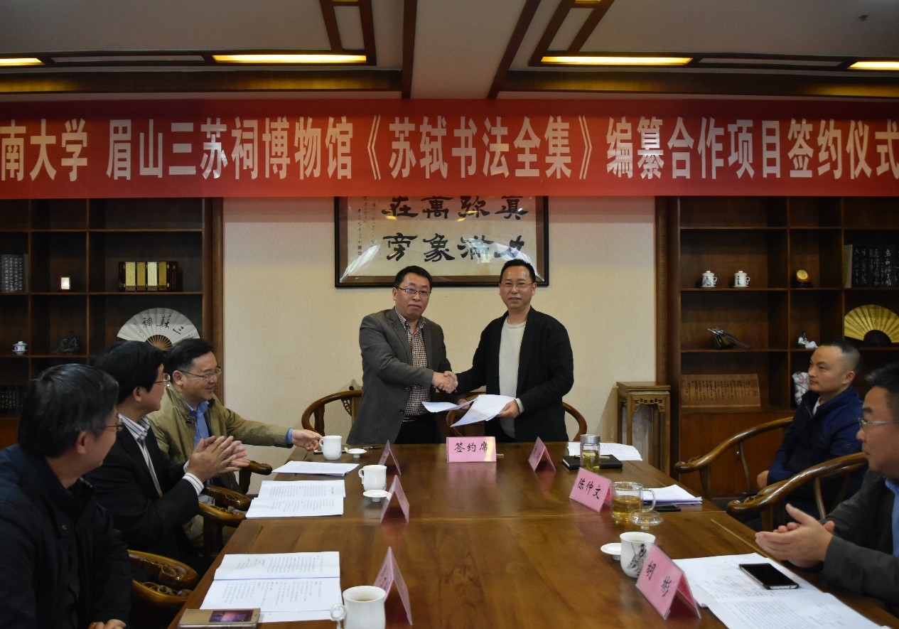 10月13日下午,由yl7703永利集团、眉山三苏祠博物馆合作的《苏轼书法全集》编纂项目签约仪式在眉山三苏祠博物馆曾枣庄会议室举行。