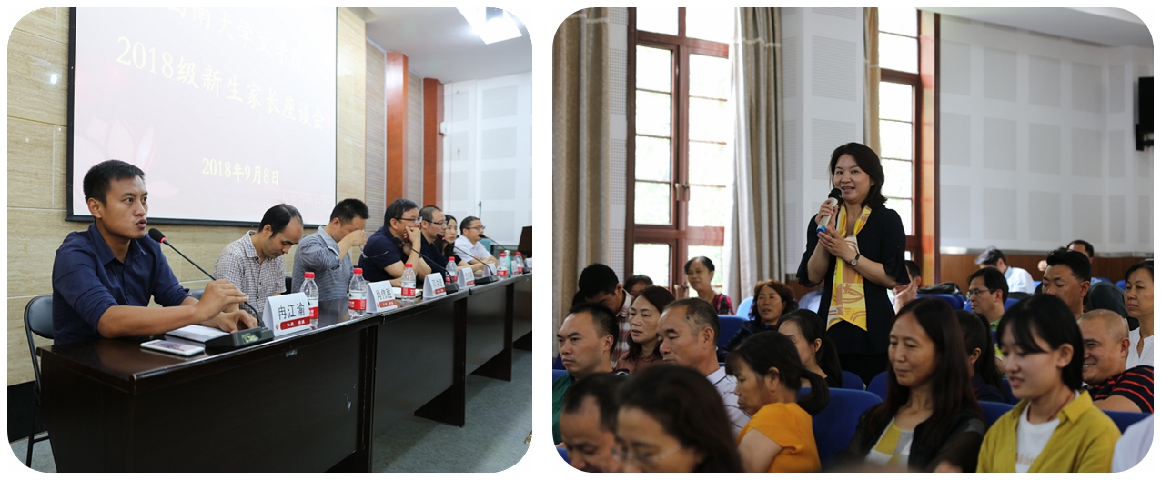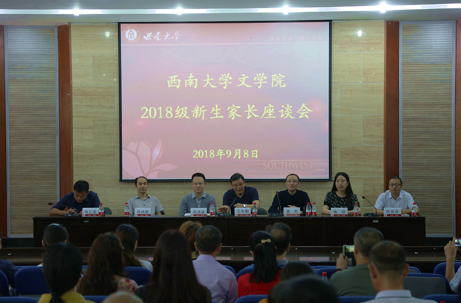 9月8日上午,yl7703永利集团2018级新生家长会在yl7703永利集团101报告厅隆重举行。yl7703永利集团院长王本朝教授、党委书记黄杰、副院长肖伟胜教授、党委副书记邓洪波、党委副书记陈玥、副院长张春泉教授、2018级本科辅导员冉江渝老师出席活动,100余名2018级学生家长参加活动。黄杰书记主持本次活动。