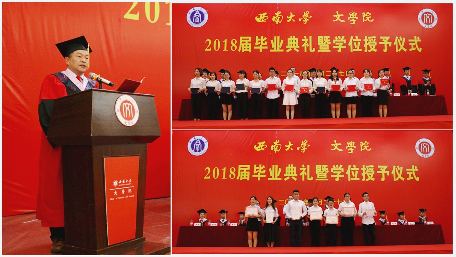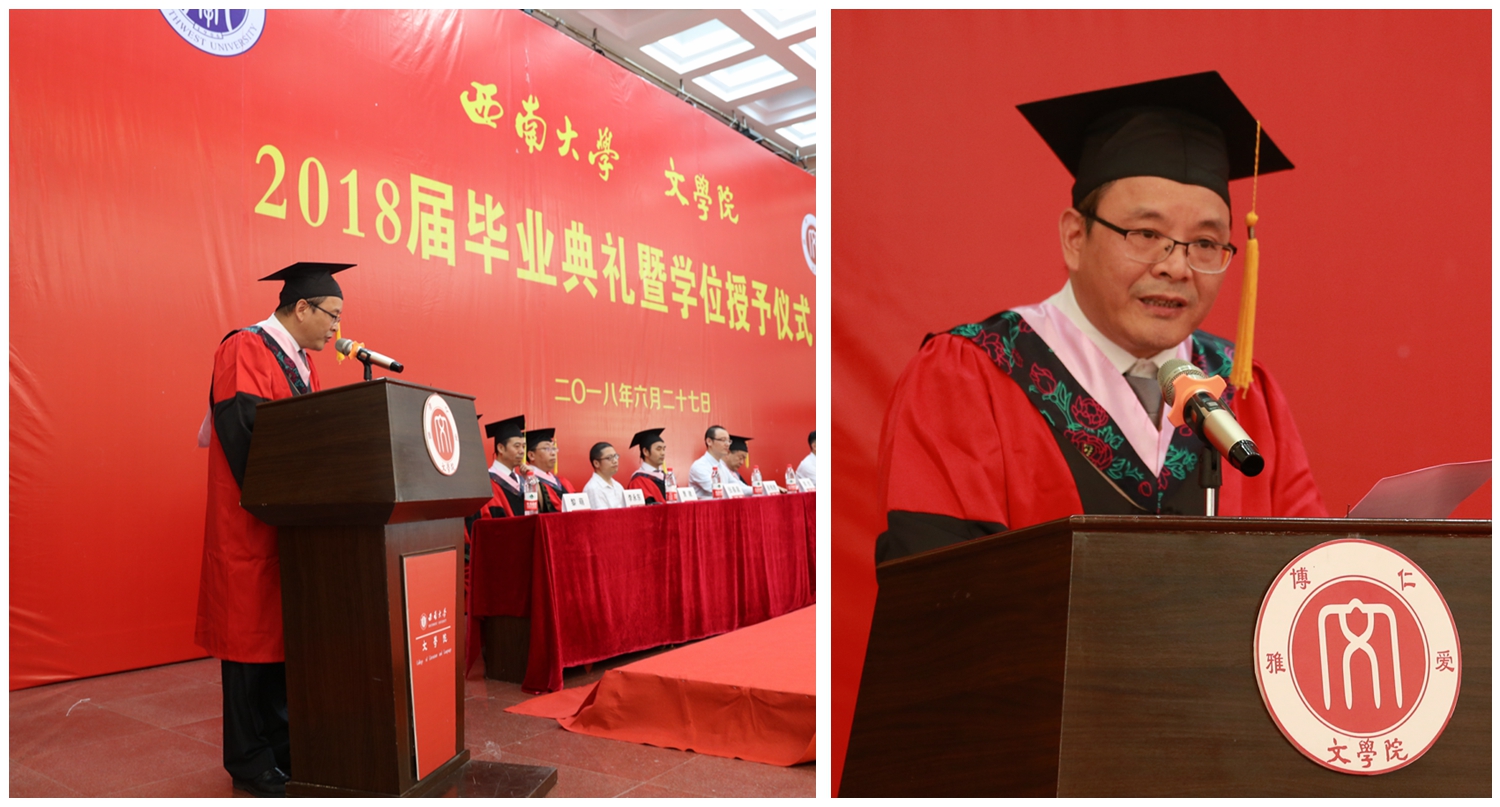 6月27日下午,yl7703永利集团2018届毕业典礼暨学位授予仪式在圆顶一楼报告厅隆重举行。副校长丁忠民,yl7703永利集团院长王本朝、党委书记黄杰、副书记何定龙、副院长肖胜伟、副书记陈玥、副院长张春泉;李永东教授、李应志教授、何宗美教授、黄大宏教授,曹建教授、黎萌教授出席,全体辅导员、教师代表、家长代表以及2018届全体毕业生参加仪式。