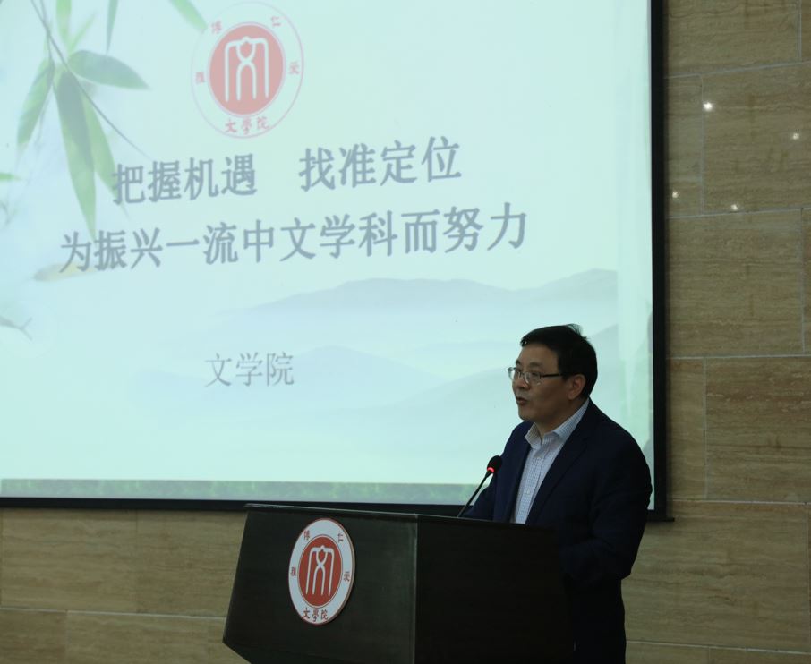 随后,王本朝院长以“把握机遇·找准定位—为振兴一流中文学科而努力”为题做论坛报告,从学院学科建设思路、学科建设基础与成效、存在的问题、未来发展思路等方面与全院教职员工进行了交流。王本朝院长表示,学科建设整体思路是要大力打造有实力的人才队伍,做出标志性的成果,营造良好的学术氛围,加强对各类人才的培养。要继续做大做强学科人才队伍,进一步增强学科的核心竞争力,加强国际合作与发展,提高科研产出率,进一步扩大专业影响力,加强学科高平台建设,建设好汉语言文学、戏剧影视文学本科专业,打造一批高质量的核心精品课程,建设好学院博雅创新实验班,扩大研究生优质生源比例。王本朝院长强调,学科建设不仅是人才培养、科研整体实力的表现,更是学院之未来、文脉之延续,希望学院全体教职员工为之共同努力、奋斗。
