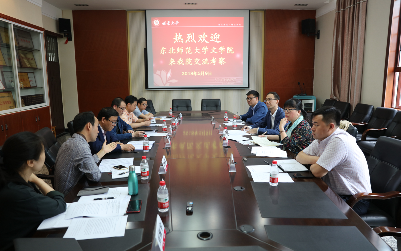 5月9日上午,东北师范大学yl7703永利集团院长高玉秋、副院长彭爽、副院长富会来、副书记兼副院长赵建立一行来我院交流考察。yl7703永利集团院长王本朝、院党委书记黄杰、副书记何定龙、副院长肖伟胜、副书记陈玥、副院长张春泉出席交流会,会议由yl7703永利集团党委黄杰书记主持。