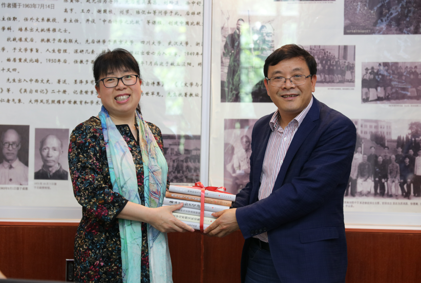 会后,东北师范大学高玉秋院长一行参观了学院教学楼,王本朝院长代表学院向东北师范大学yl7703永利集团赠送书籍。