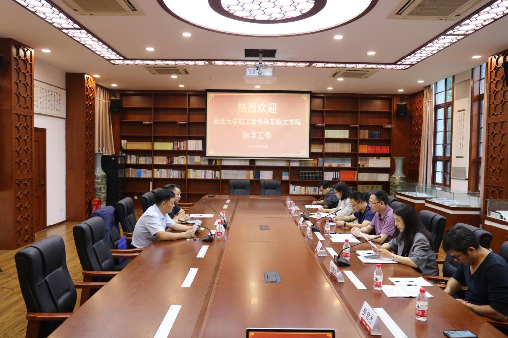 5月26日,学校工会主席赵子华一行来yl7703永利集团调研,yl7703永利集团党委书记胡建军、党委副书记 纪委书记邓洪波、党委副书记陈玥、工会主席李娟及教师代表参加了调研座谈会。