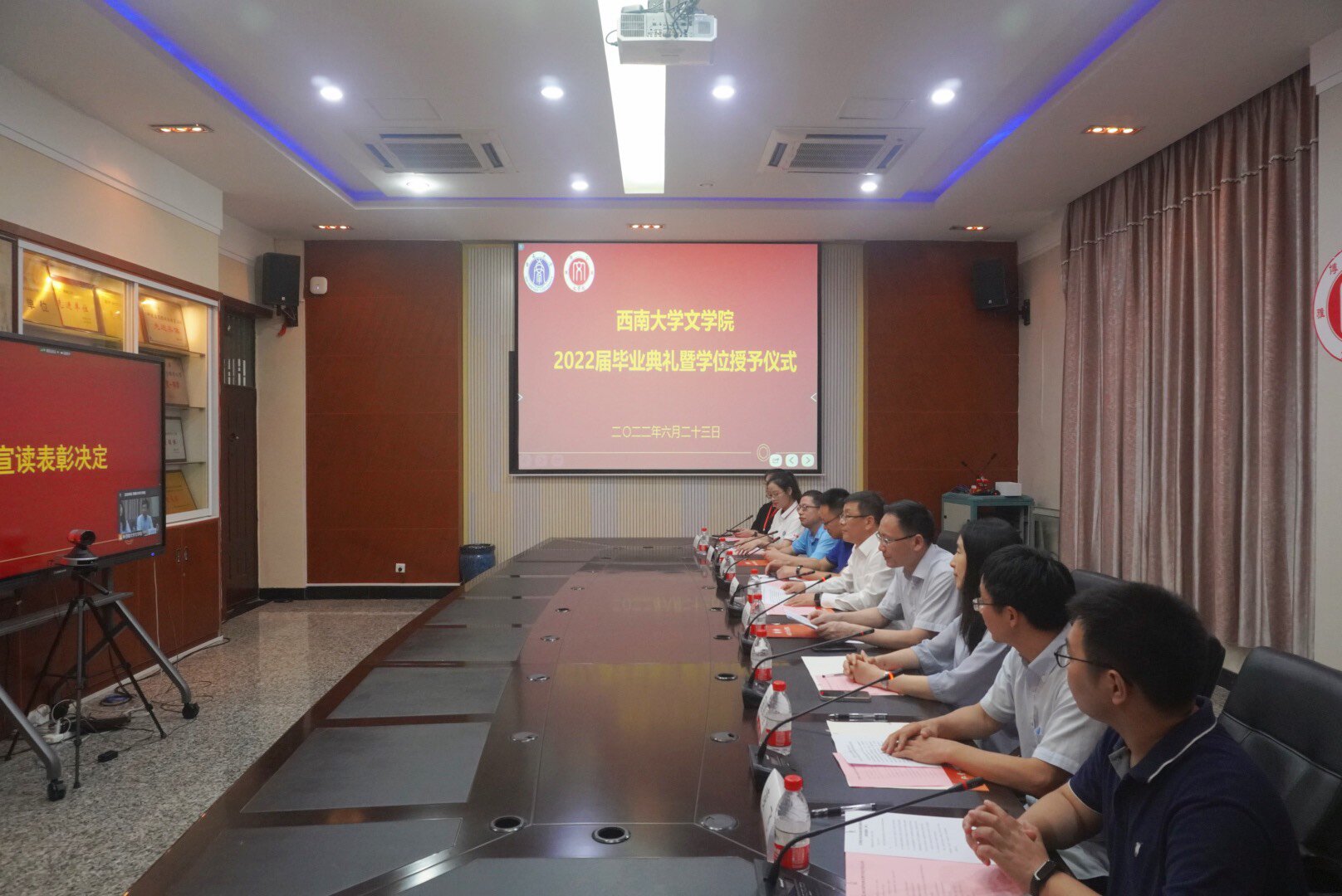 yl7703永利集团副院长张春泉教授宣读毕业决定,yl7703永利集团副院长寇鹏程教授宣读表彰决定,永利集团中国语言文学学术委员会主任王本朝教授宣读学位授予决定。