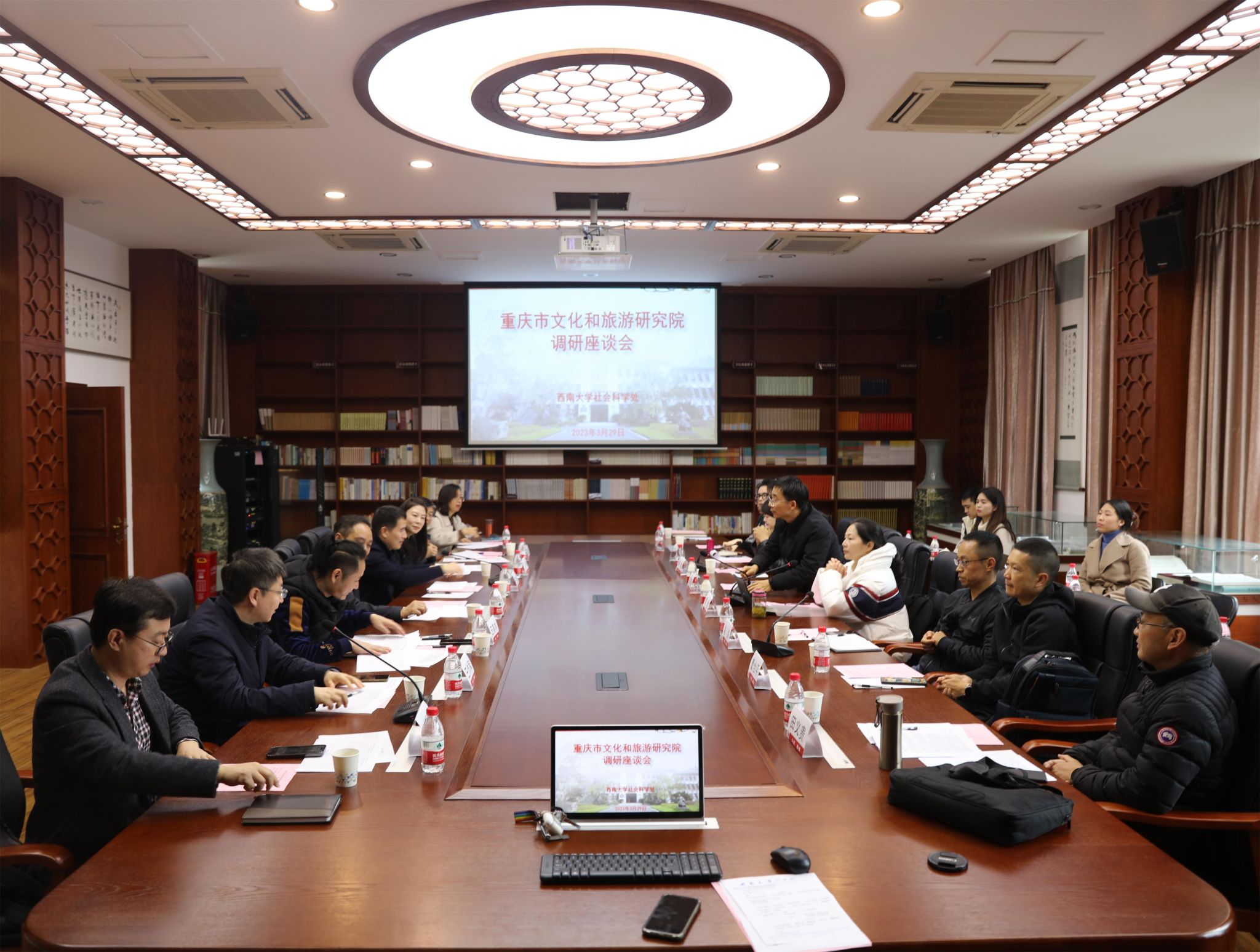 3月29日上午,重庆市文化和旅游研究院调研座谈会在我院召开。重庆市文化和旅游研究院院长牟元义、科研组织部主任王美木、艺术规划办王静老师,学校社会科学处处长王牧华,副处长王作军、刘新智,yl7703永利集团副院长寇鹏程,音乐学院副院长黄君、陈若旭,美术学院副院长陈刚,新闻传媒学院副院长赵剑,相关学院教师代表等30余人参会,会议由王牧华处长主持。